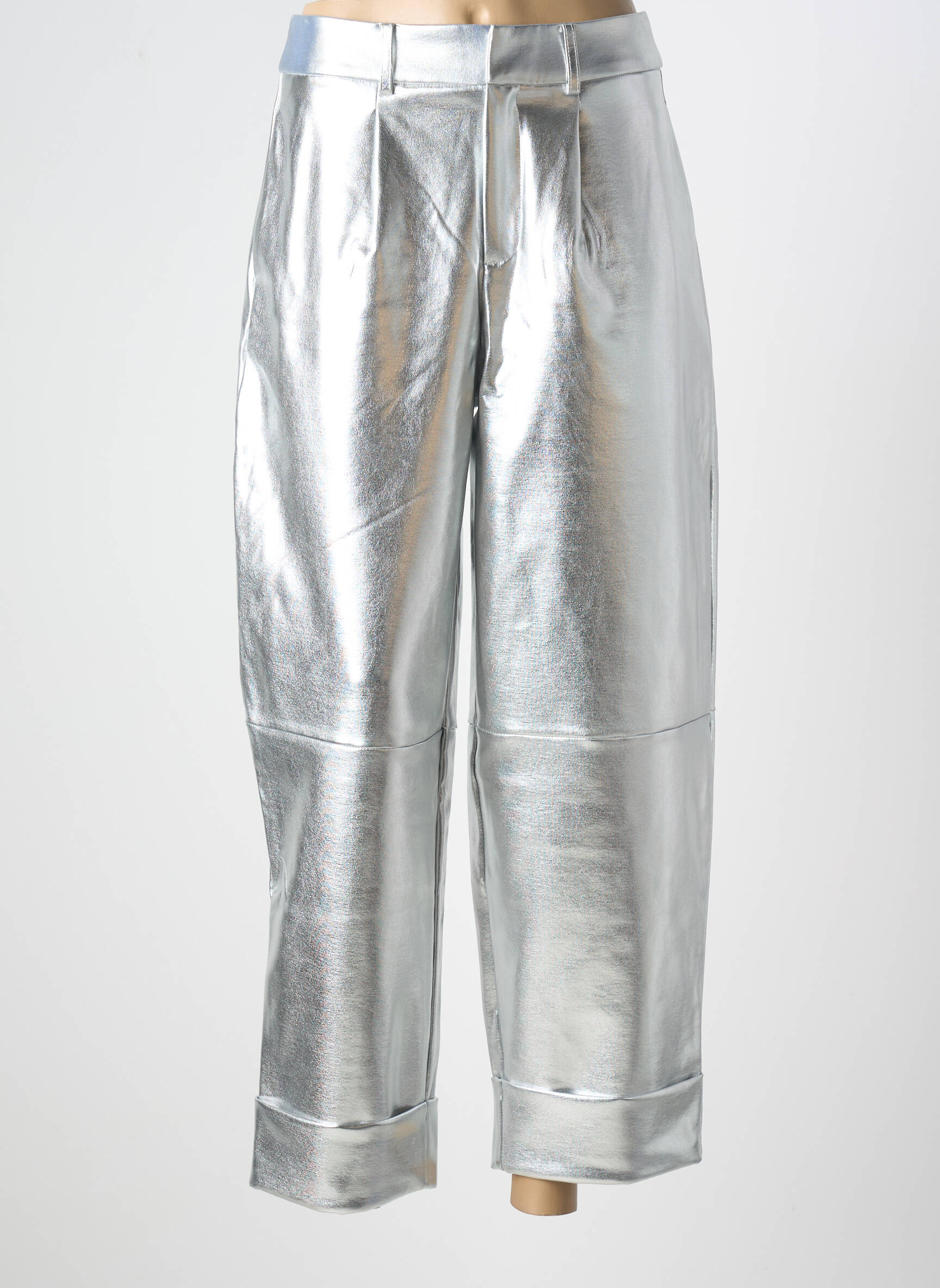 Profitez d'une vraie bonne affaire avec ce pantalon chino pour femme de la marque ICHI, parfait pour donner du style à petit prix. Sa finition argentée ultra lumineuse attire tous les regards, tandis que sa coupe droite légèrement ample et ses détails soignés au niveau de la taille et des ourlets apportent une touche tendance et moderne à vos tenues du quotidien. Une pièce chic et originale à prix mini, idéale pour celles qui osent affirmer leur style tout en faisant des économies.