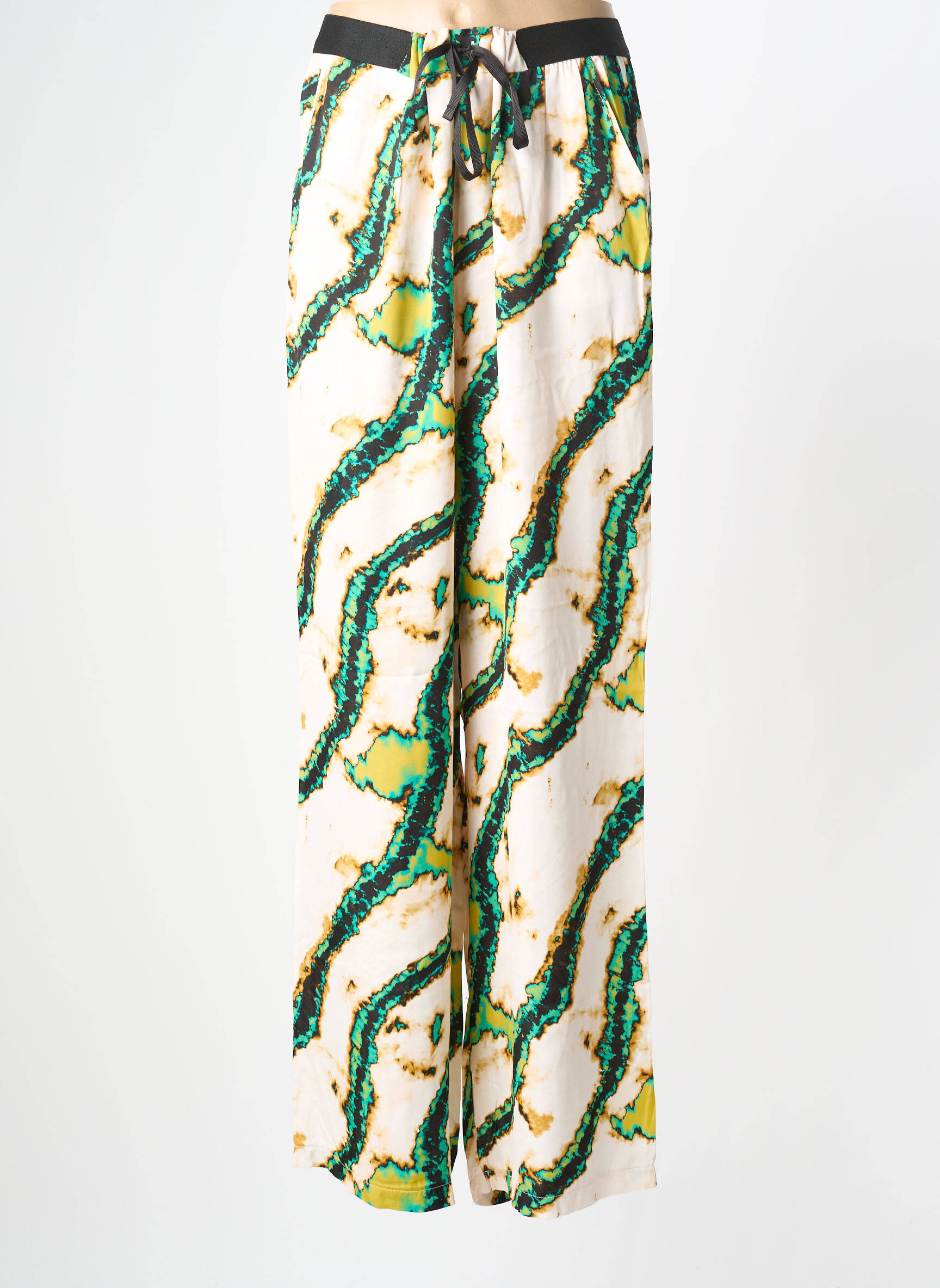 Craquez pour ce pantalon droit IVY BEAU pour femme, une véritable opportunité à prix doux pour adopter un look tendance sans vous ruiner. Son imprimé original mêle des teintes de vert, jaune et noir sur fond clair, pour une allure à la fois moderne et pleine de fraîcheur. Sa coupe fluide offre un tombé élégant, tandis que la taille élastiquée avec cordon de serrage noir vous garantit confort et facilité au quotidien. C'est le bon plan du moment pour dynamiser votre garde-robe avec style à petit prix.