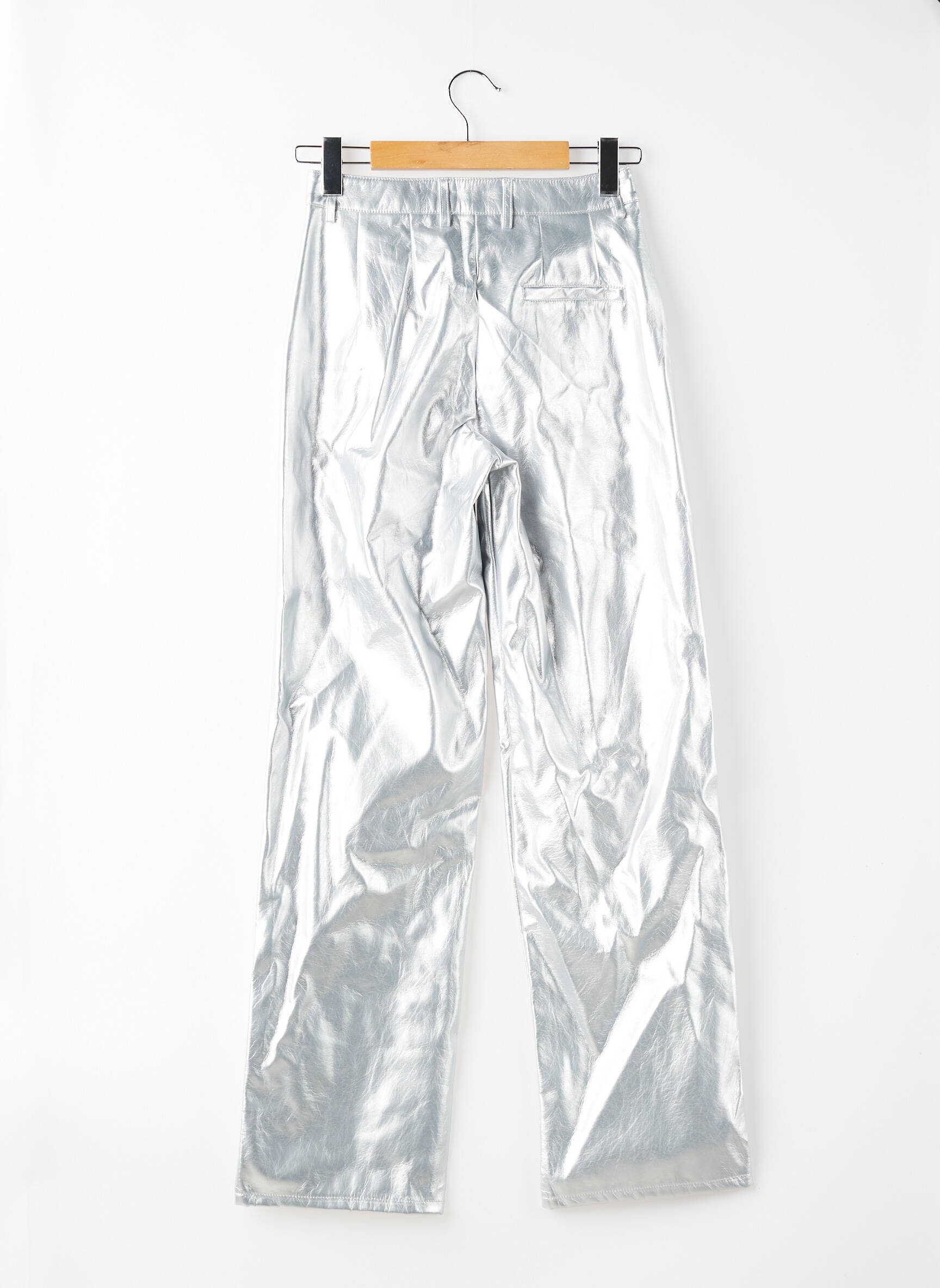 Pour donner du style à ce pantalon argenté, il suffit de le marier avec un simple t-shirt blanc ou une chemise oversize pour jouer la carte de l’élégance décontractée. Pour une allure plus pointue, on peut l'accompagner d’un blazer noir ou d’un crop-top uni et des baskets minimalistes. Il s’associe aussi très bien à des accessoires sobres, comme un sac à main épuré et des boucles d’oreilles argentées pour un rappel subtil.