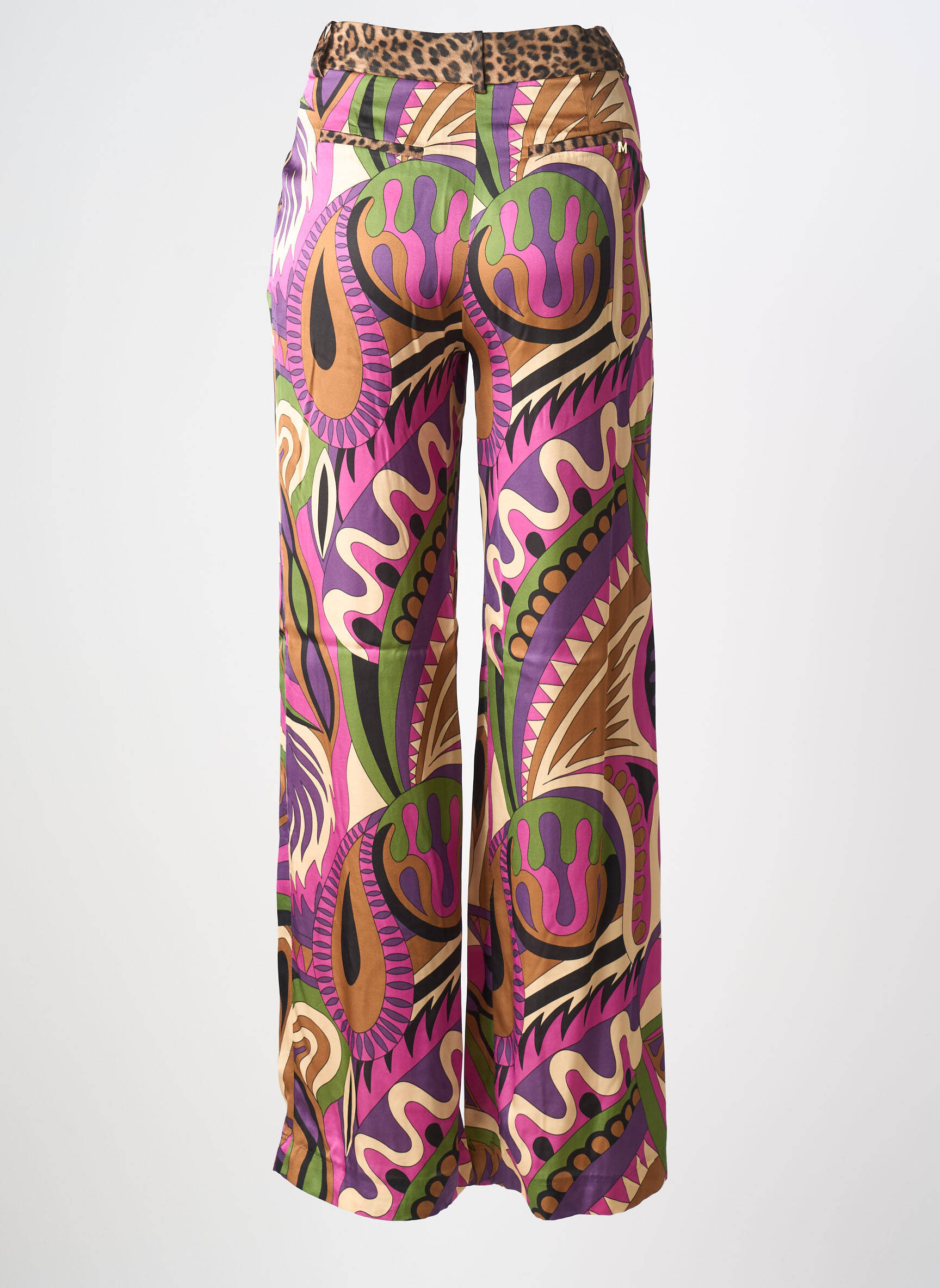 Pour mettre en valeur ce pantalon, rien de mieux qu’un haut uni, de préférence dans une teinte claire comme le blanc ou le beige, afin de laisser pleinement s’exprimer ses motifs. Ajoutez une paire de sandales ou de baskets blanches pour une allure décontractée, ou choisissez des talons sobres pour sublimer votre silhouette en soirée. Un sac en bandoulière et quelques bijoux dorés viendront compléter votre tenue avec élégance et modernité.