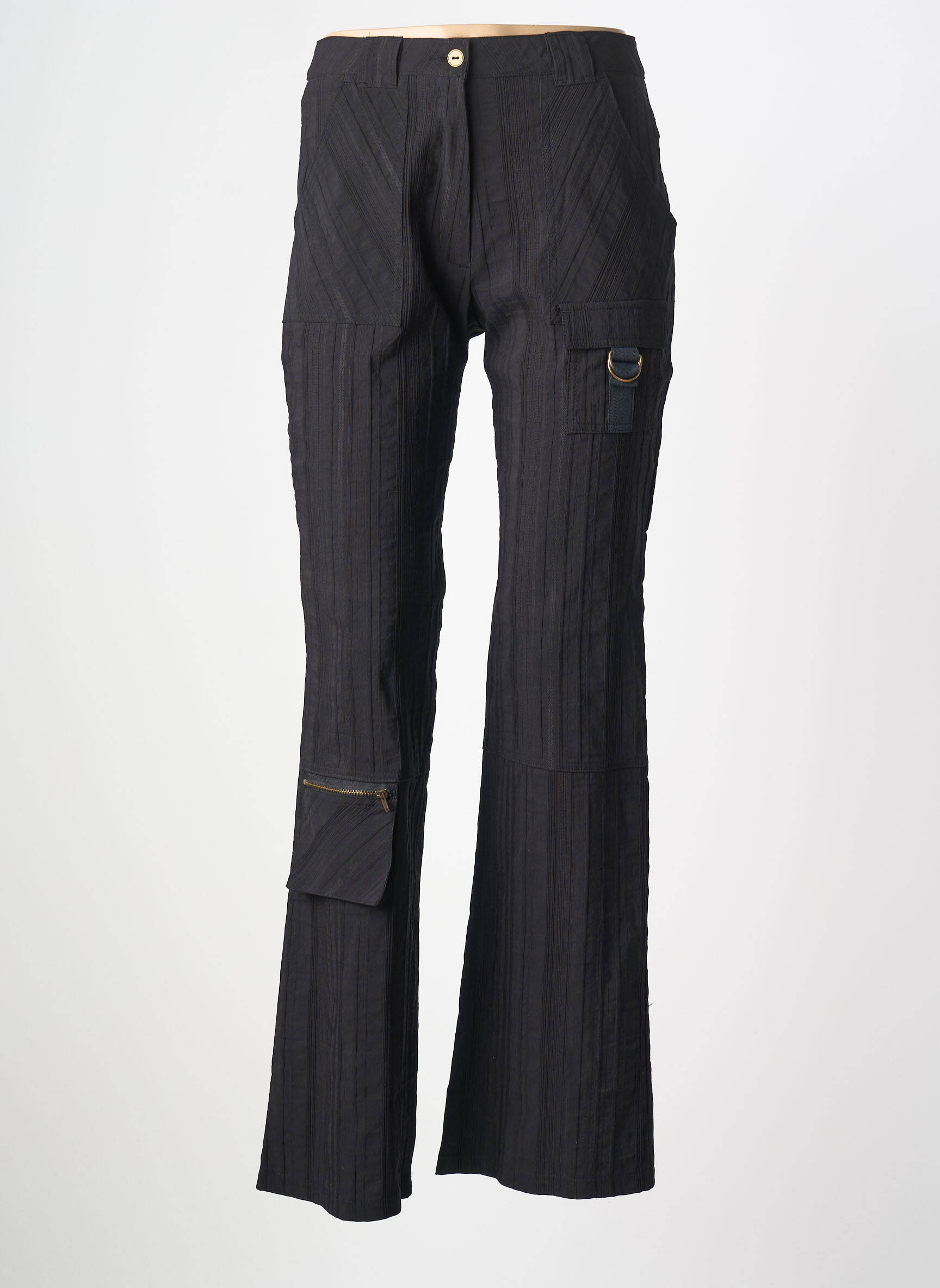 Saisissez l'occasion d'adopter un look chic à petit prix avec ce pantalon droit LUCCHINI pour femme, dont la coupe flatte la silhouette tout en conservant une allure décontractée. Son tissu noir façon rayures ton sur ton ajoute une touche sophistiquée, tandis que les poches à rabat et zippées, ainsi que la boucle décorative sur la cuisse, offrent une note originale et moderne. C'est le bon plan à ne pas manquer pour un style tendance sans se ruiner !