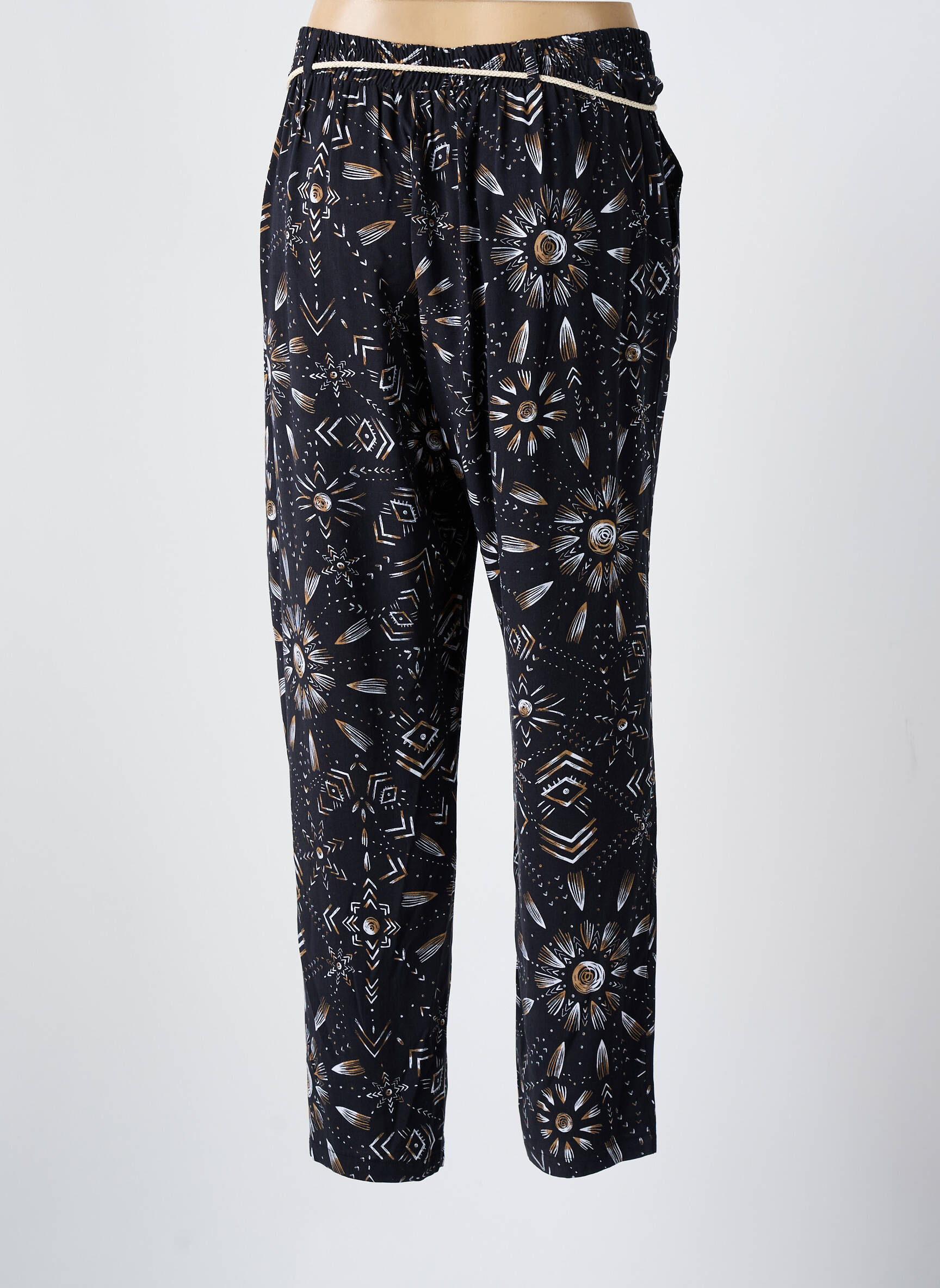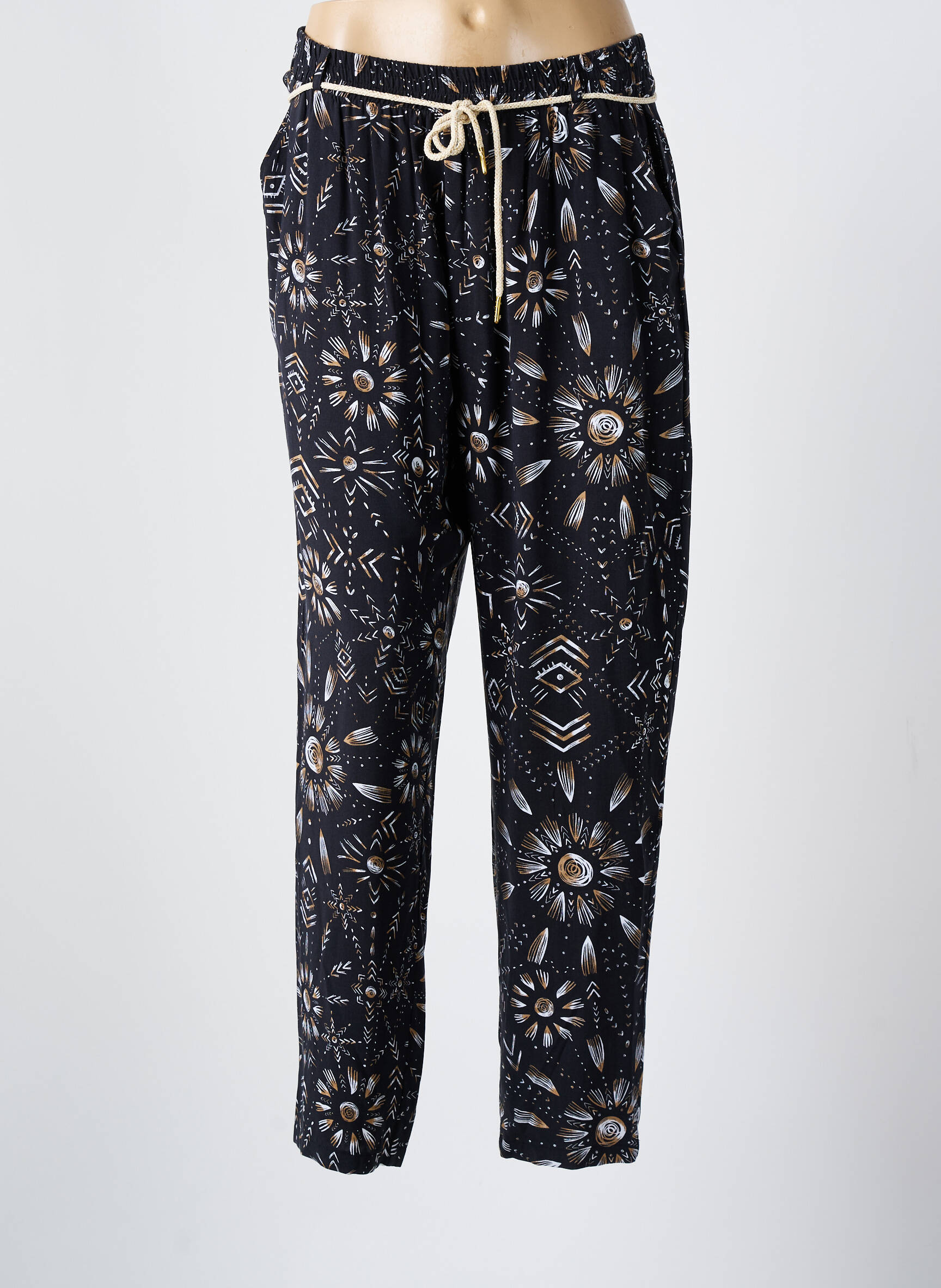 Profitez d’un vrai bon plan avec ce pantalon droit MASSANA pour femme, parfait pour allier style et confort à prix mini. Son imprimé graphique aux tons sombres relevés de motifs floraux apporte une touche moderne et originale à votre vestiaire, tandis que la taille élastiquée avec lien de serrage assure un ajustement idéal. Idéal pour celles qui recherchent une pièce tendance et accessible, ce pantalon vous permettra de renouveler votre look sans vous ruiner.