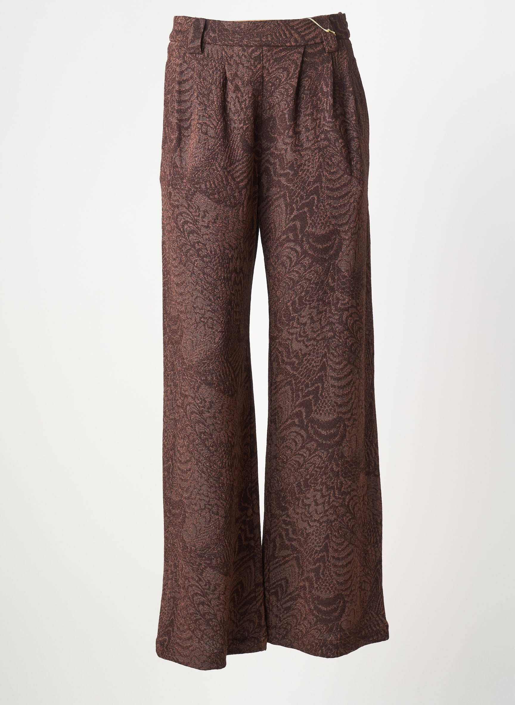 Profitez d'une occasion à ne pas manquer avec ce pantalon droit pour femme de la marque MOMONI, proposé à prix irrésistible. Son tissu arbore un élégant motif texturé dans des tons bruns chauds, associé à une coupe fluide et sophistiquée qui allonge la silhouette et assure un confort optimal tout au long de la journée. Idéal pour sublimer vos tenues avec une touche de raffinement, ce pantalon à petit prix est une excellente affaire à saisir sans hésiter.