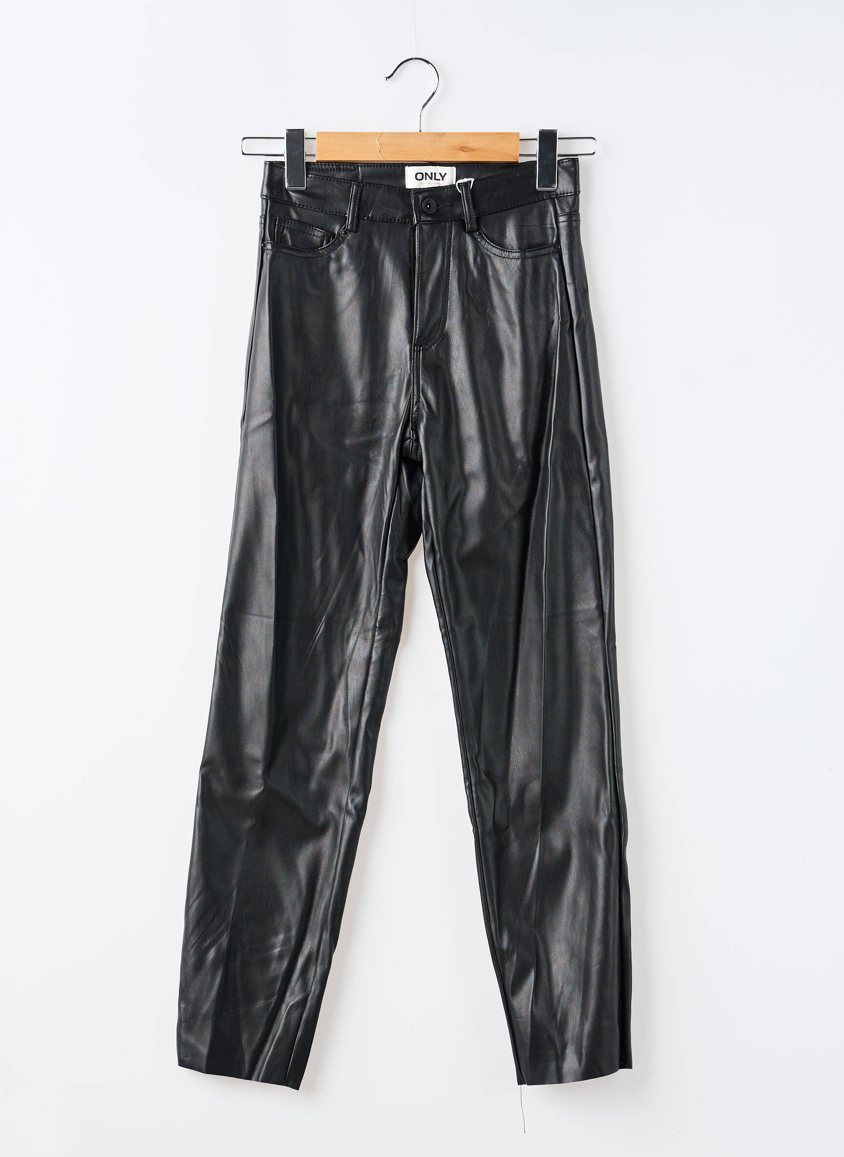 Voici une belle opportunité de faire des économies tout en adoptant un style tendance grâce à ce pantalon droit pour femme de la marque ONLY, réalisé dans une matière effet cuir noir qui apporte une allure moderne et élégante à petit prix. Sa coupe droite flatte la silhouette et s’associe facilement avec tous vos hauts, pour un look urbain et branché sans se ruiner. C'est le choix parfait pour celles qui aiment profiter de bons plans sans compromis sur le style.