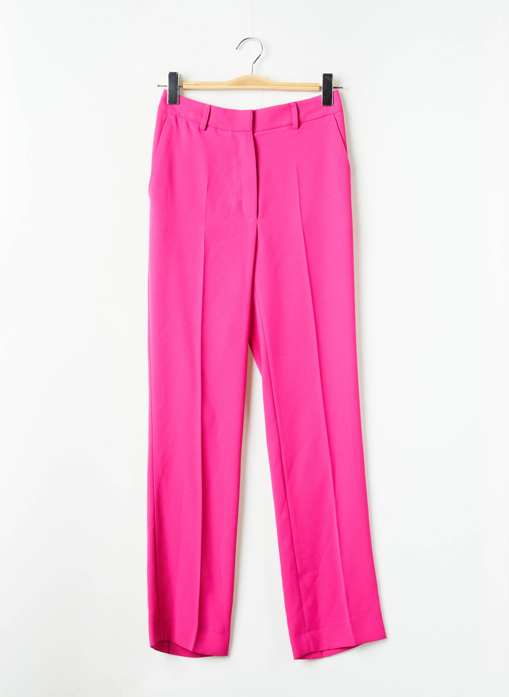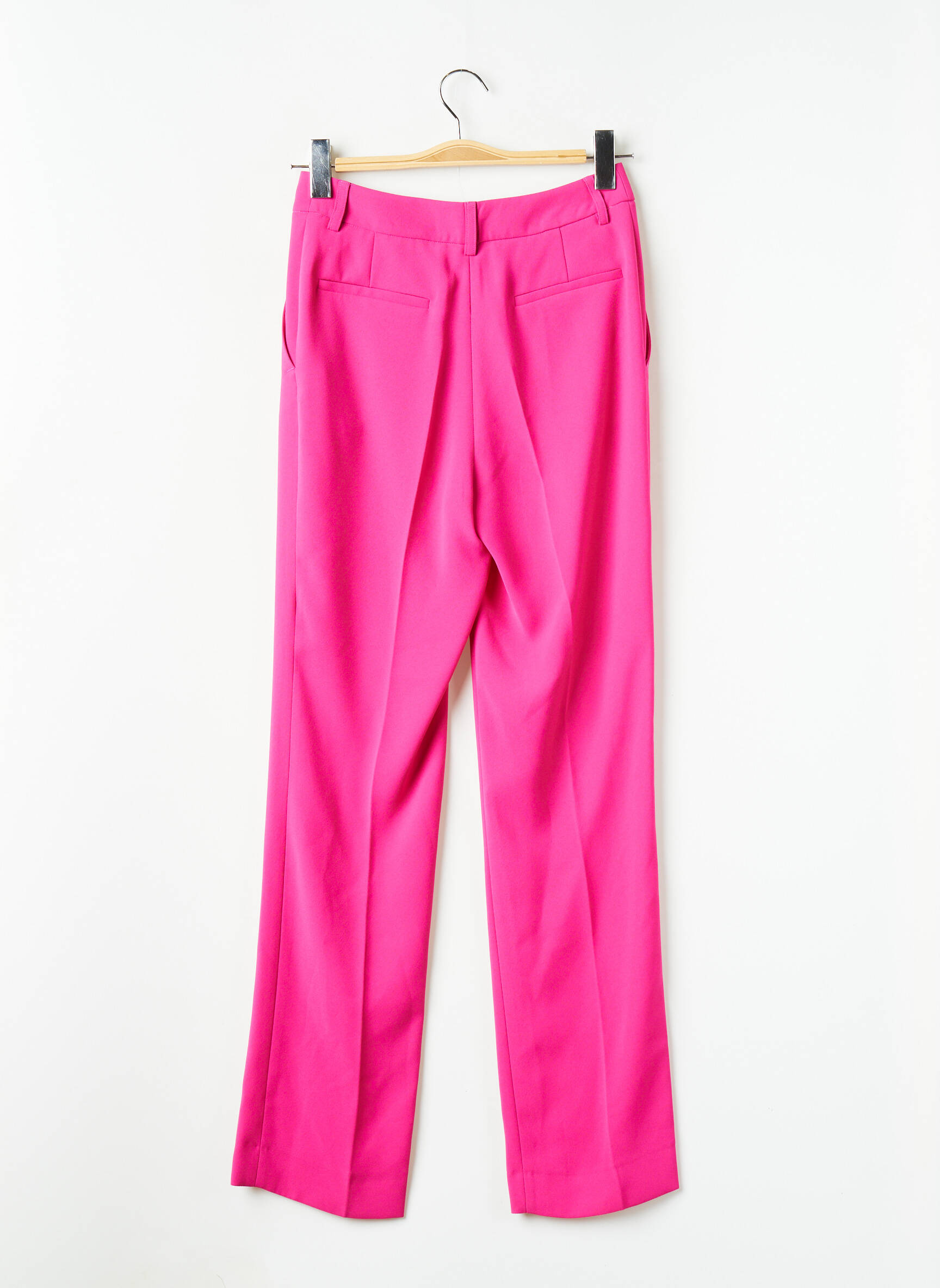 Ce pantalon fuchsia peut se porter avec une chemise blanche légèrement rentrée pour un effet sophistiqué, ou bien avec un t-shirt basique et un blazer oversized pour une allure décontractée mais élégante. Il se marie à merveille avec des sandales à talons ou des baskets blanches selon l'envie du jour, et un accessoire doré viendra apporter la touche finale à votre look.