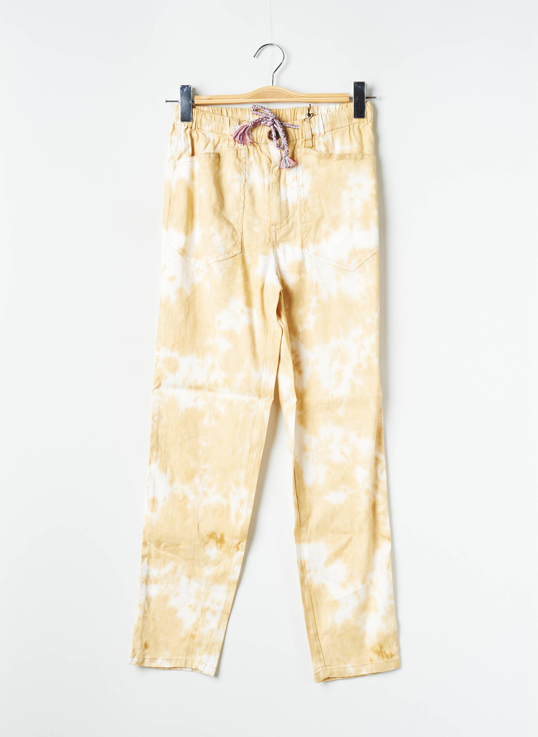Profitez de ce bon plan avec ce pantalon droit pour femme signé SAK'S qui allie style tendance et petit prix, parfait pour dynamiser votre garde-robe sans se ruiner. Sa coupe droite et son effet tie & dye dans les tons beige et blanc apportent une touche d'originalité et de fraîcheur pour un look casual et moderne en toute circonstance, tandis que le lien à la taille permet un ajustement personnalisé et confortable.