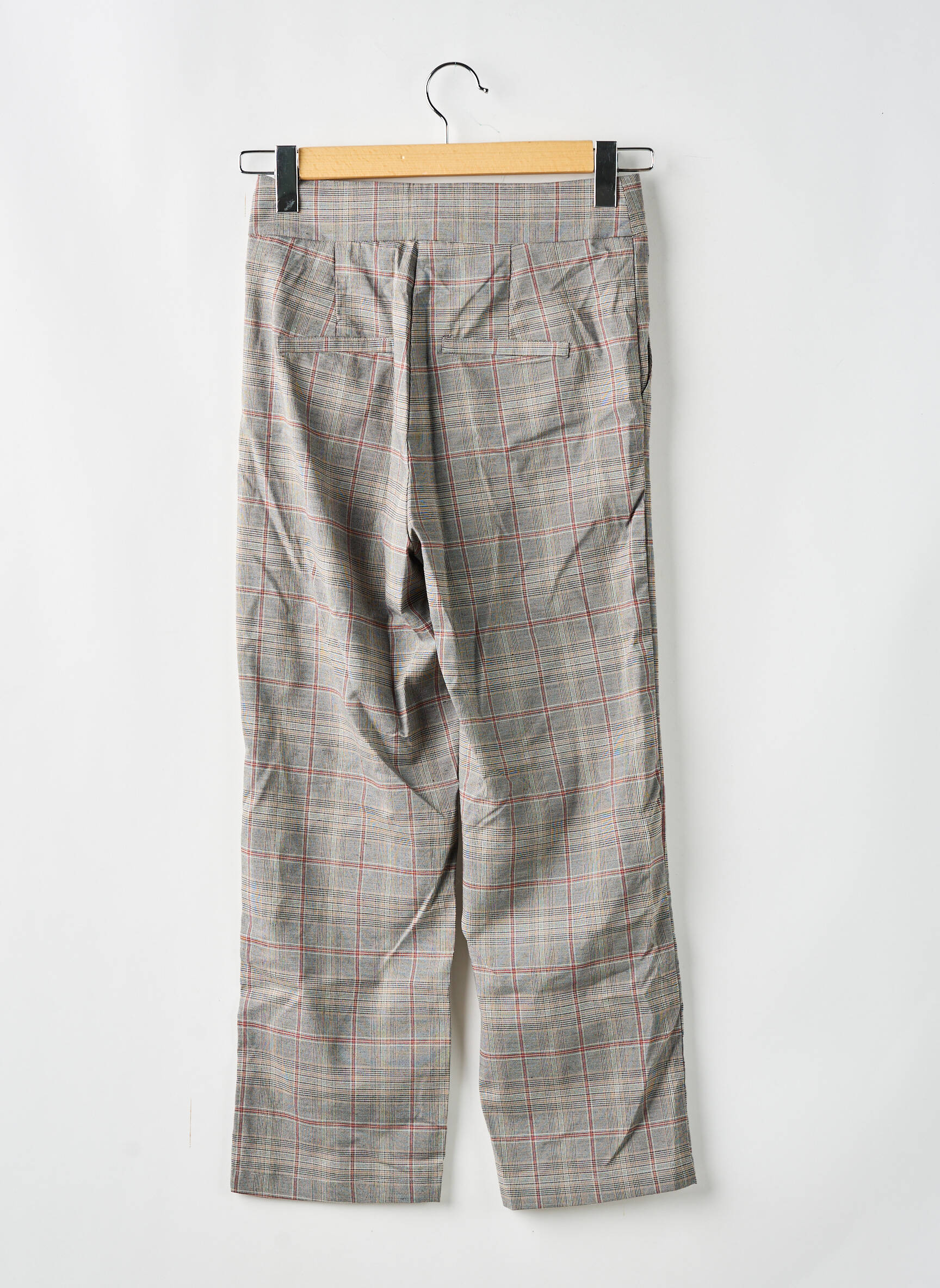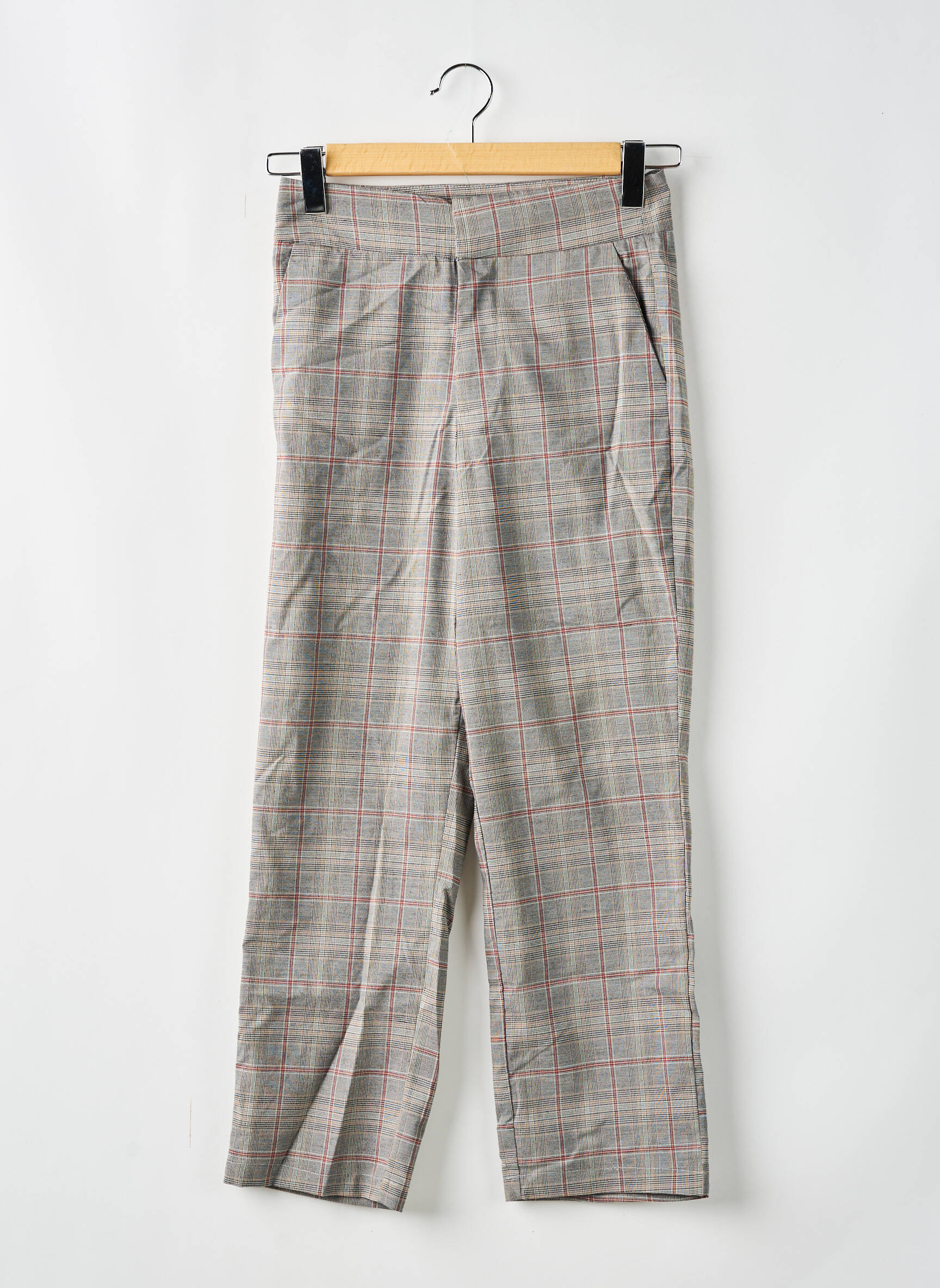 Pantalon Droit Sans Marque Gris Taille Haute