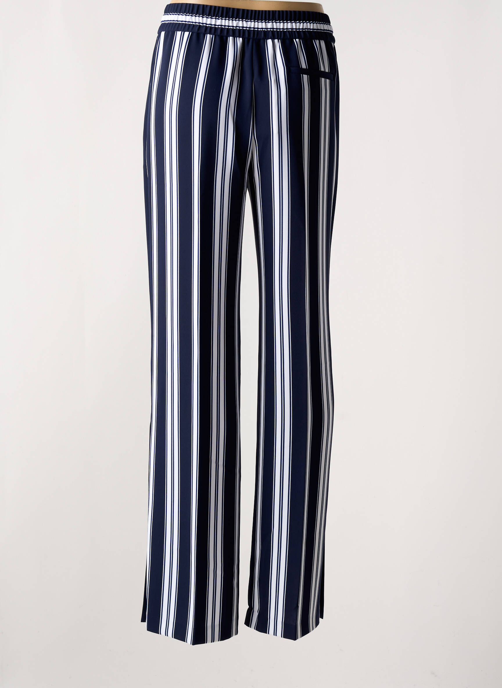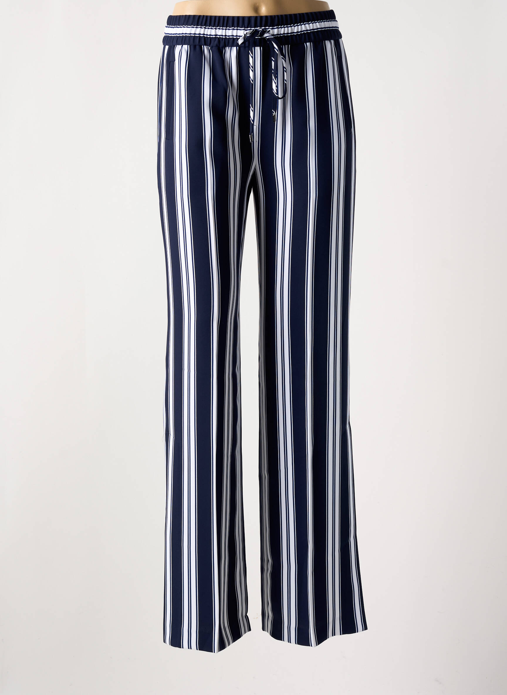Voici un pantalon droit Tommy Hilfiger pour femme, parfait pour profiter de l’élégance à petit prix. Son motif à larges rayures verticales bleu marine et blanc apporte une touche chic et allonge la silhouette, tandis que sa coupe fluide et sa taille élastiquée à cordon de serrage assurent un confort optimal au quotidien. C’est l’occasion idéale d’ajouter une pièce tendance et signée à votre dressing sans vous ruiner.