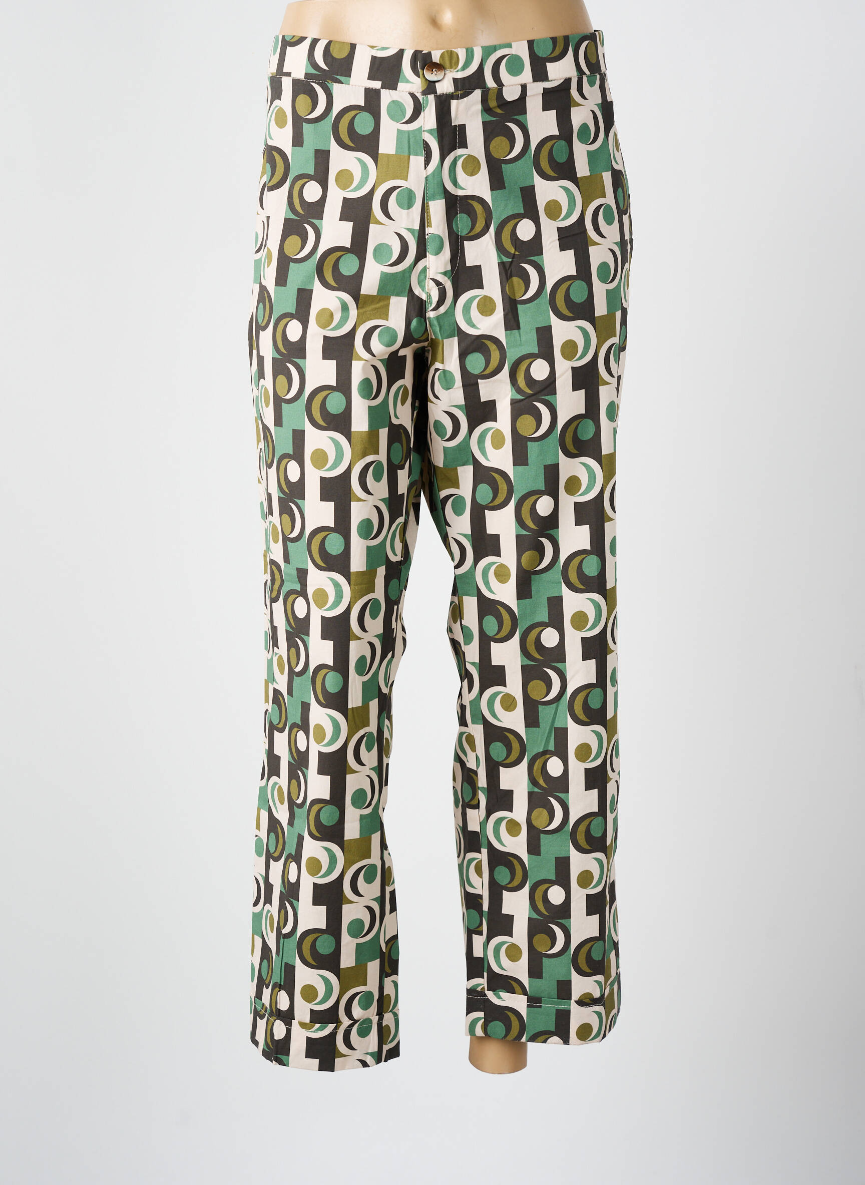 Profitez d’un véritable bon plan avec ce pantalon droit WALTRON pour femme, idéal pour apporter une touche rétro-chic à votre dressing sans vous ruiner. Son imprimé graphique multicolore, mêlant des nuances de vert, beige, marron et noir, assure un style unique et tendance, parfait pour se démarquer à petit prix. Avec sa coupe droite intemporelle, il s’adapte facilement à toutes vos envies mode, de la journée décontractée à la soirée stylée, à prix malin pour un look remarquable en toute simplicité.