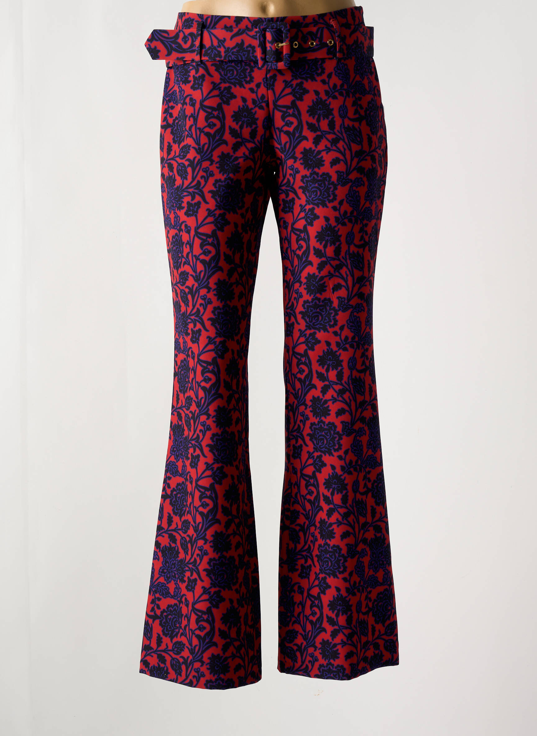 Osez le mariage audacieux entre élégance et originalité avec ce pantalon flare signé B.YU, qui révèle un motif floral intense en rouge et bleu contrastant avec une coupe évasée incontournable. Conçu pour sublimer la silhouette, il s'attache avec une ceinture intégrée à boucle et se distingue par son tissu structurant agrémenté d'un design baroque qui apporte une touche chic et vintage à toutes vos tenues.