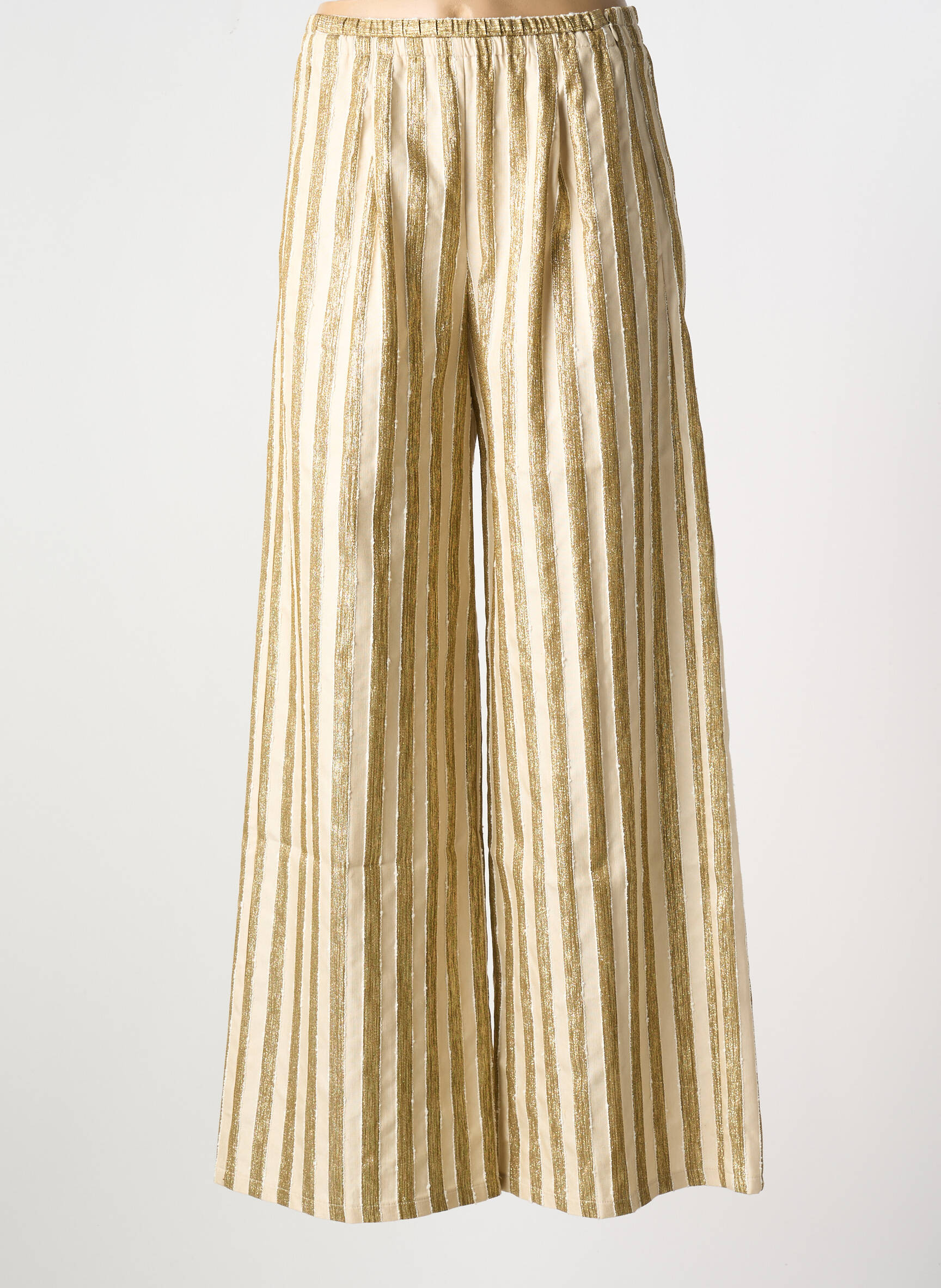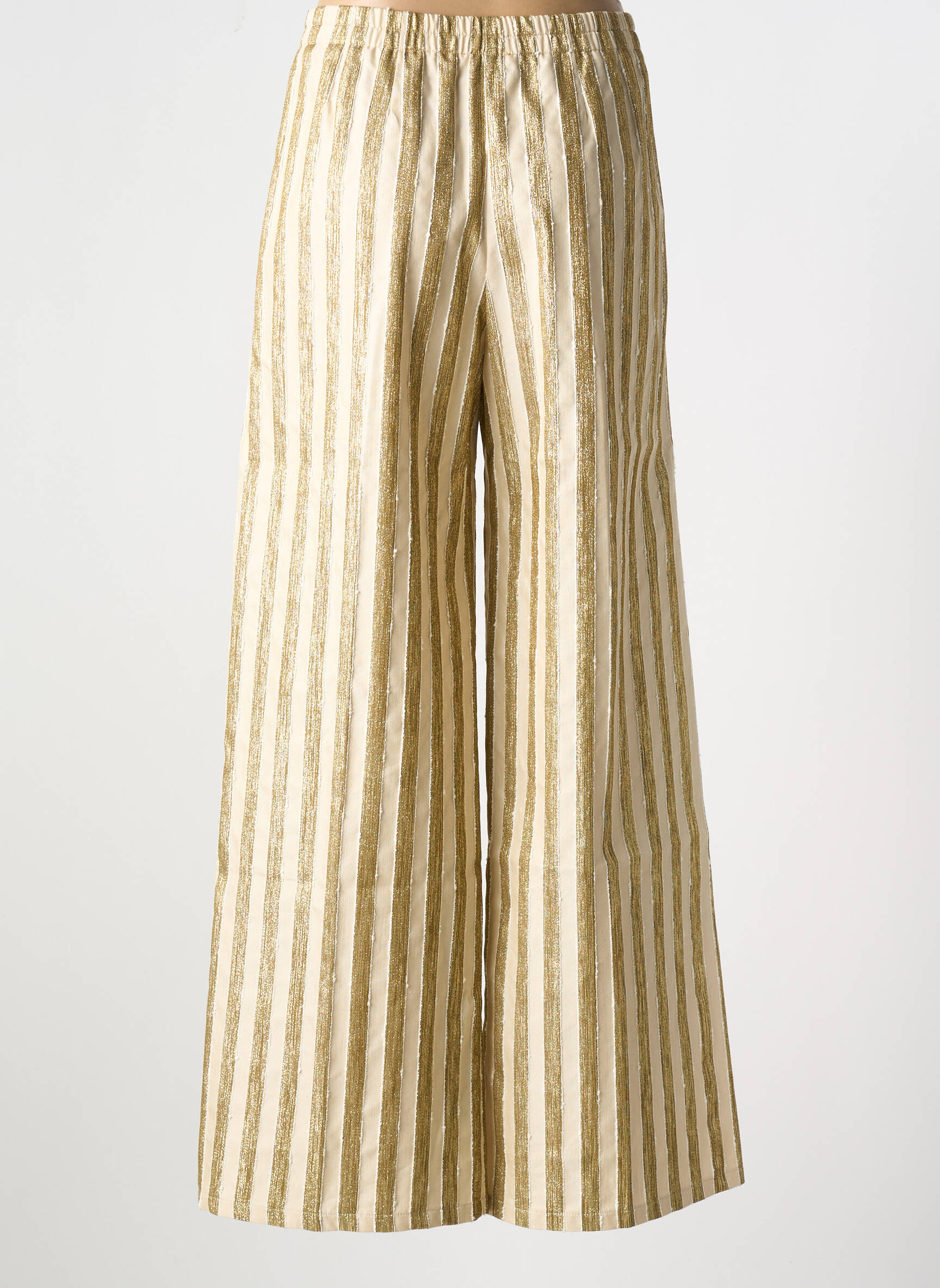 Craquez pour ce pantalon flare de la marque FORTE-FORTE, une véritable affaire à saisir pour apporter style et élégance à votre garde-robe sans vous ruiner. Son motif à rayures verticales dorées et blanches apporte une touche de lumière et d’originalité, tandis que sa coupe évasée flatte la silhouette avec une allure bohème ultra tendance. Profitez de ce bon plan incontournable pour vous offrir une pièce de créateur à prix doux.