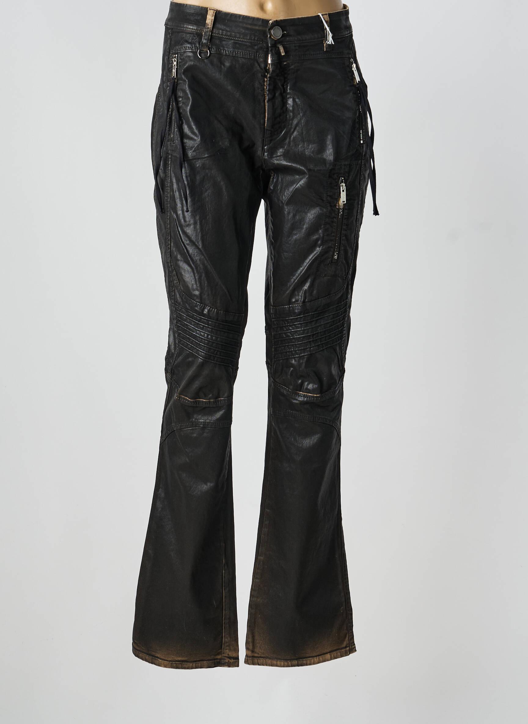 Profitez d'une pièce tendance à prix mini avec ce pantalon flare de la marque HIGH, qui séduit par son look moderne et son effet cuir texturé, offrant une allure rock et sophistiquée. Son design se distingue par de nombreux détails zippés, des surpiqûres travaillées et une coupe évasée qui sublime la silhouette tout en apportant une touche d’originalité à vos tenues. C’est l’occasion idéale d’adopter une pièce forte signée HIGH sans vous ruiner, pour un style affirmé et unique à petit prix.