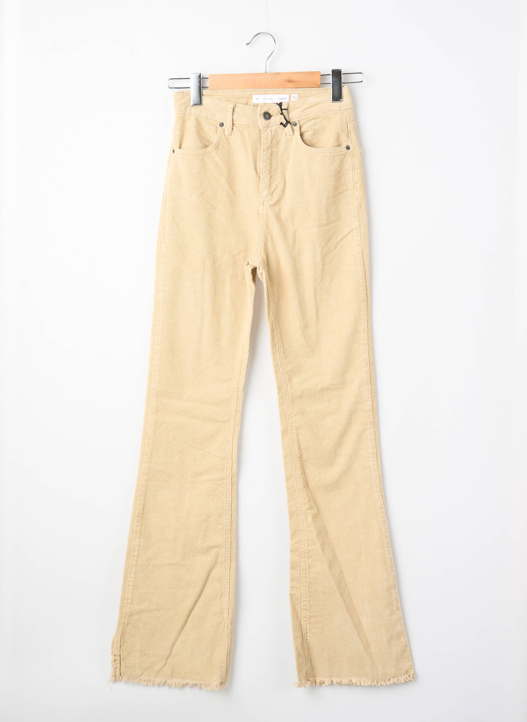 Voici le pantalon flare de la marque SUBDUED, une pièce tendance à prix mini pour renouveler votre garde-robe sans vous ruiner. Sa couleur beige lumineuse et son tissu texturé apportent une touche de modernité tandis que la coupe évasée flatte la silhouette avec élégance. Les finitions effilochées au bas des jambes ajoutent une note casual et actuelle idéale pour un look urbain décontracté à petit prix.