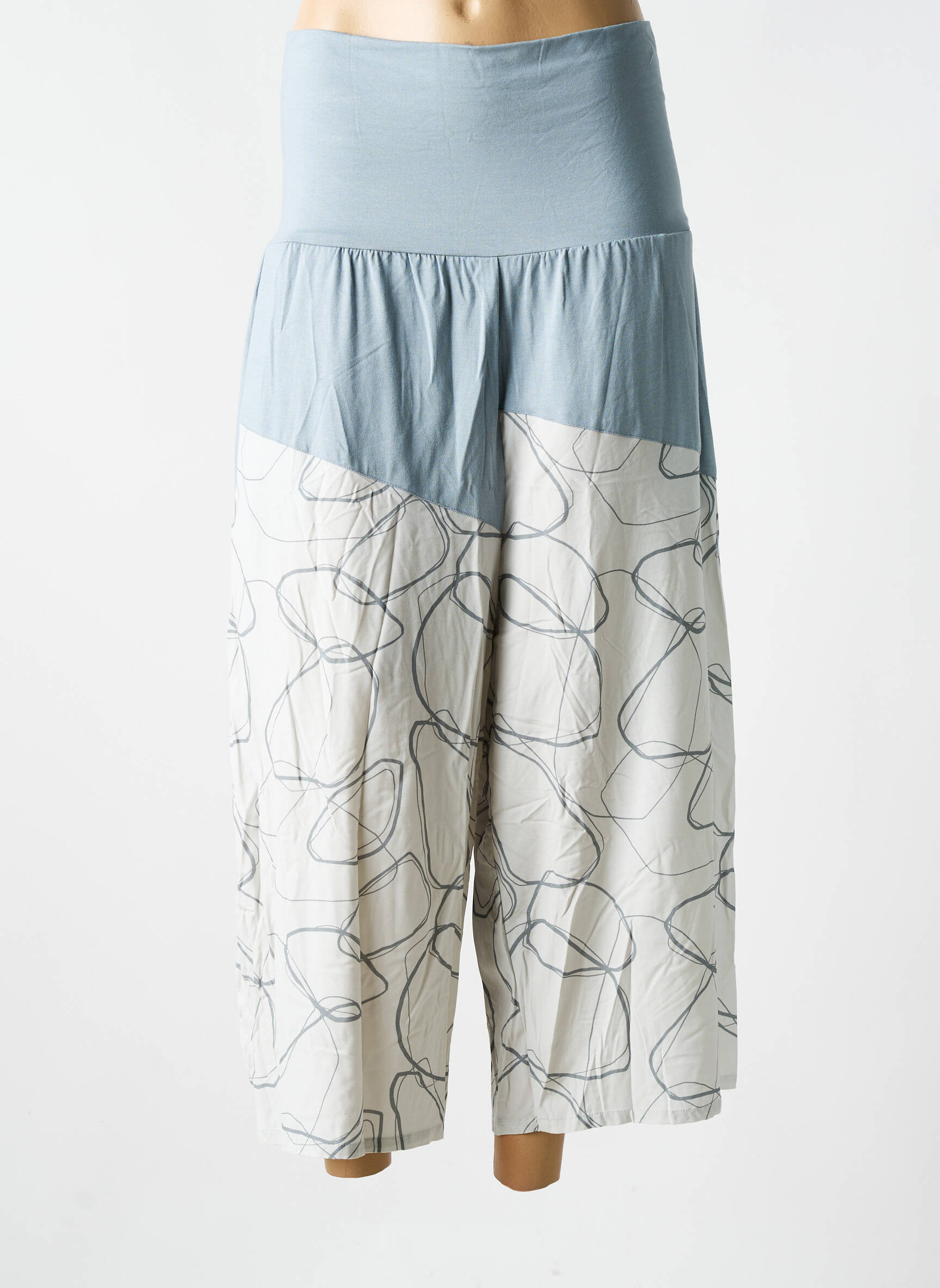 Craquez pour le style et l’originalité à prix mini avec ce pantalon large de la marque ELSEWHERE, parfait pour celles qui aiment mixer confort et élégance. La taille haute en maille extensible offre un maintien agréable tandis que le jeu de matières bicolores, mêlant bleu clair uni et tissu blanc orné de motifs graphiques gris, apporte une touche moderne et artistique à votre silhouette. Un choix judicieux pour un look tendance sans se ruiner, idéal pour celles qui recherchent les bonnes affaires sur des articles uniques et stylés.