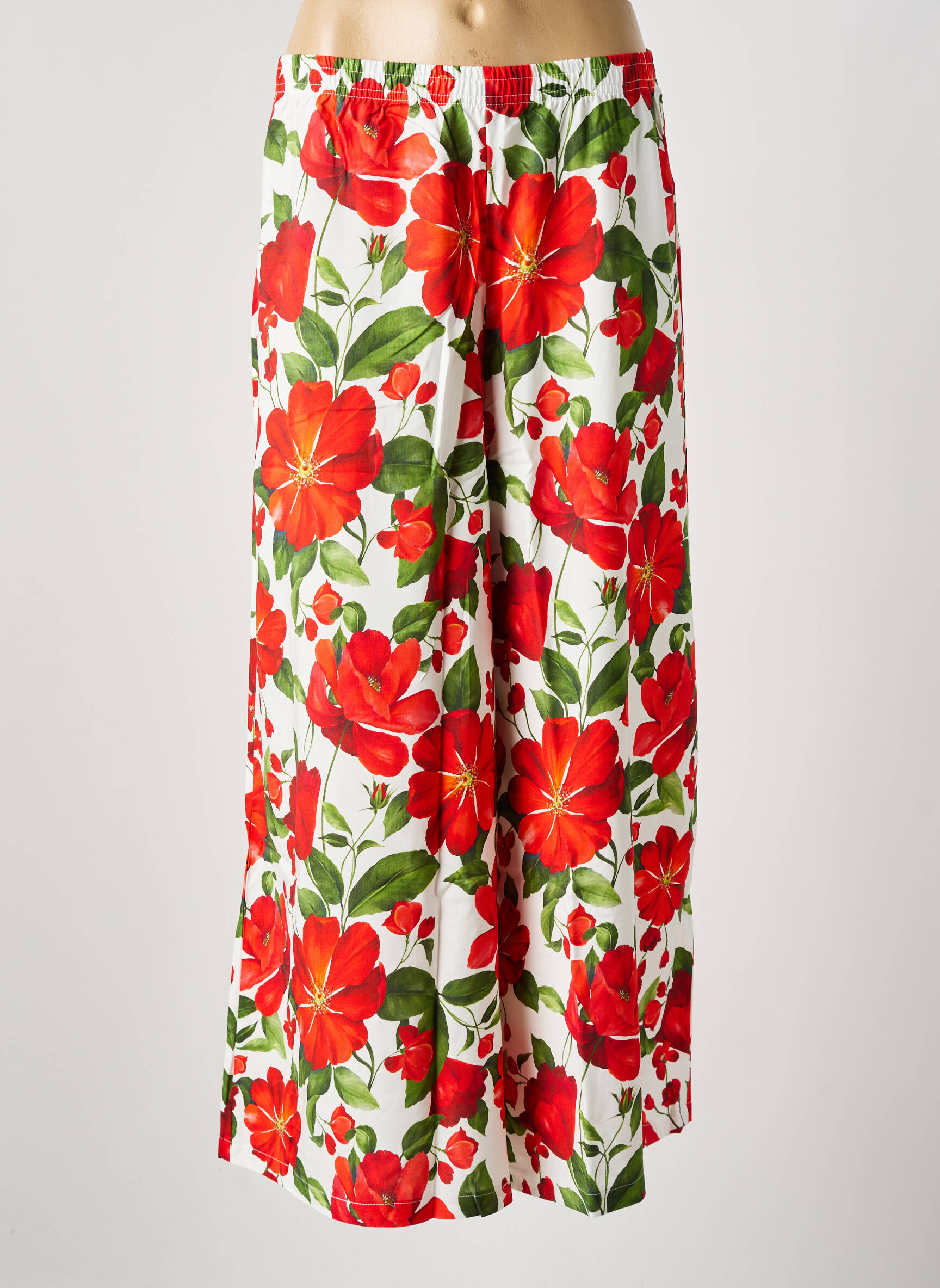 Profitez d'une offre exceptionnelle avec ce pantalon large de la marque G!OZE, parfait pour apporter une touche de fraîcheur et de couleur à votre dressing sans vous ruiner. Son motif floral éclatant sur fond blanc met en valeur de grandes fleurs rouges et un feuillage vert pour un look estival et féminin, tandis que sa coupe ample vous assure confort et liberté de mouvement toute la journée. Adoptez l'élégance décontractée à petit prix en misant sur ce pantalon tendance, idéal pour flâner en ville ou partir en vacances sous le signe de l'économie.
