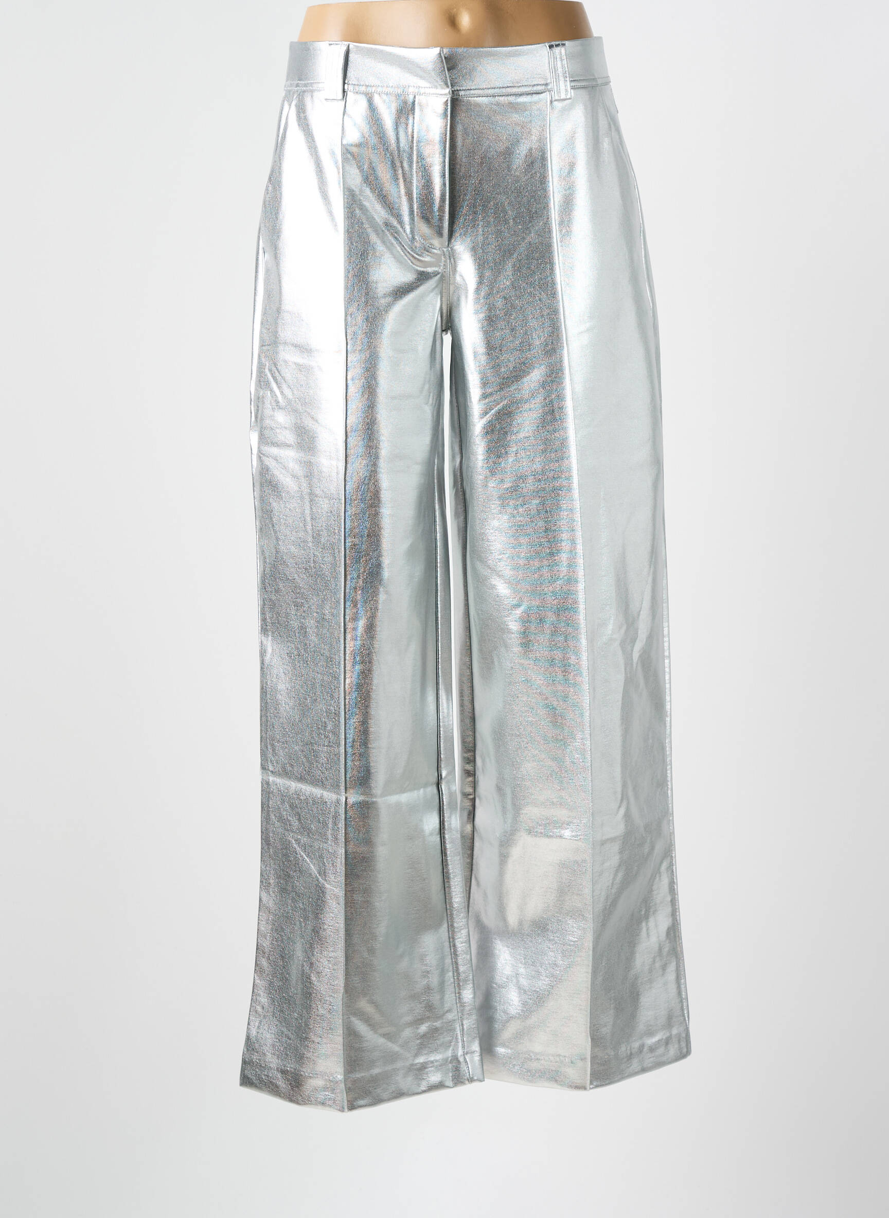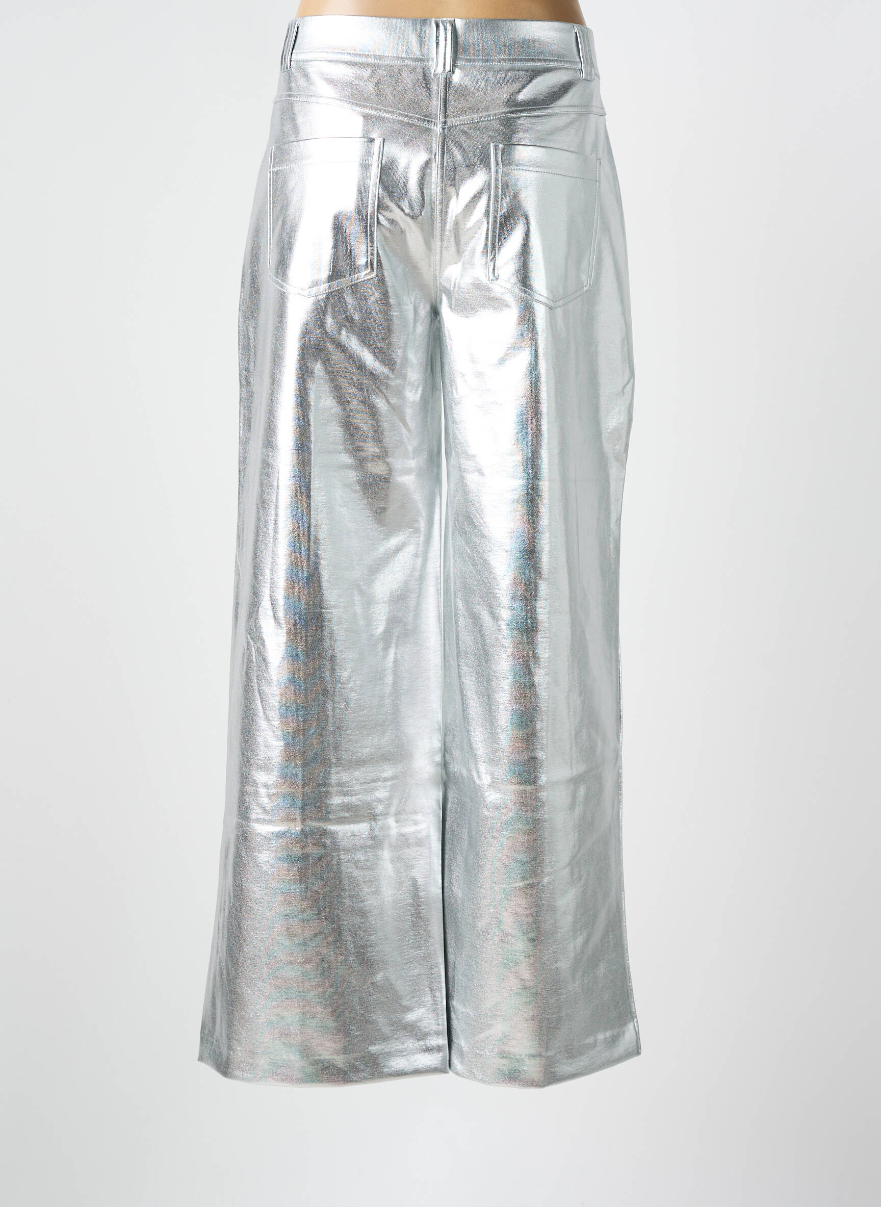 Pour un effet stylé et facile à assumer au quotidien, il suffit d’associer ce pantalon à un t-shirt blanc simple ou un top noir près du corps pour mettre en valeur son effet métallisé. Il s’accorde aussi parfaitement avec une veste en jean ou un blouson en cuir pour une touche plus décontractée ou rock. Pour finir la tenue, optez pour des baskets épaisses pour un côté urbain ou des escarpins pour un look soir tendance. Quelques accessoires argentés viendront sublimer l’ensemble sans trop charger la silhouette.