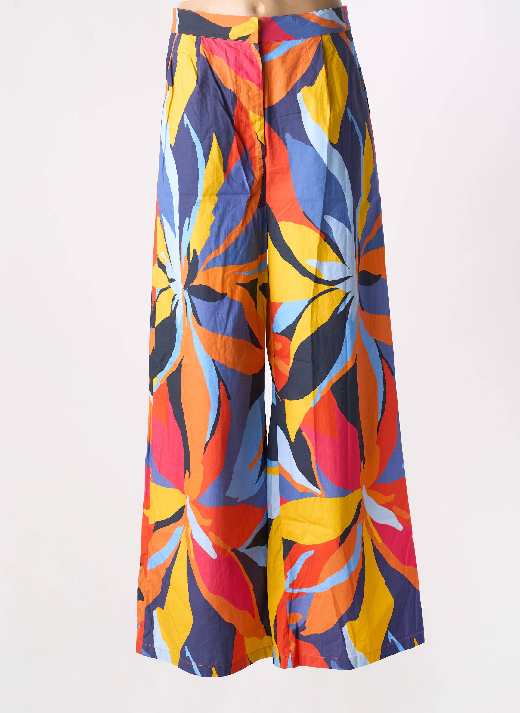 Pour sublimer ce pantalon, il suffit de l’associer à un top uni et ajusté pour équilibrer la silhouette et mettre en valeur ses motifs éclatants. Il est idéal avec un t-shirt blanc, un débardeur noir ou même une chemise nouée à la taille?; ajoutez une paire de sandales ou des baskets pour un look décontracté, ou optez pour des talons et des bijoux dorés pour une allure plus sophistiquée. Une veste en jean ou un blazer sobre seront parfaits pour finaliser la tenue sans surcharger l’ensemble.