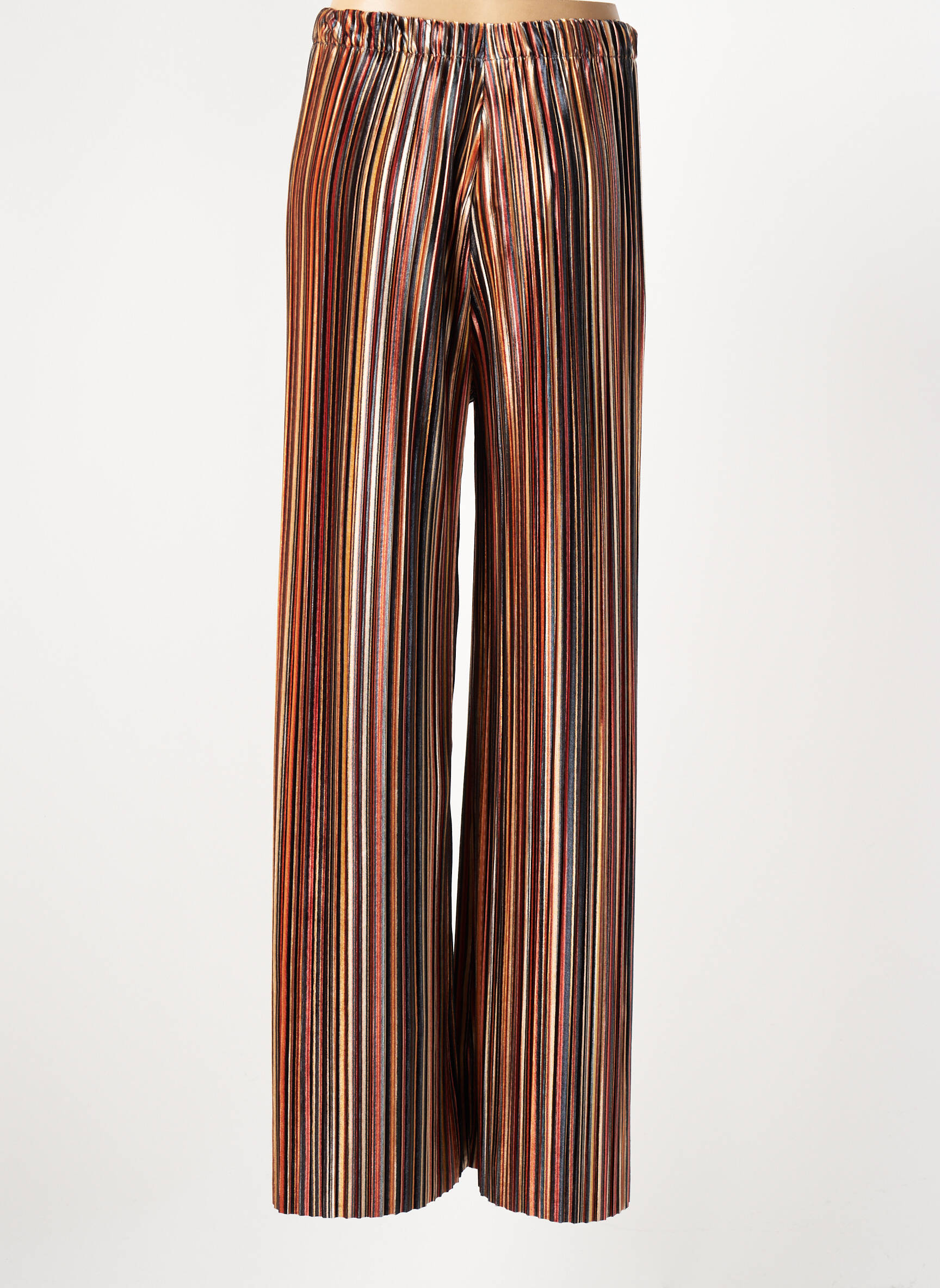 Pour valoriser ce pantalon à rayures, optez pour un haut uni qui mettra en avant son motif coloré, comme un top près du corps ou une blouse fluide. Ajoutez une veste courte ou un blouson ajusté pour structurer la silhouette. Côté chaussures, des sandales à talons ou des baskets blanches apporteront une touche décontractée ou élégante selon l’occasion. Un petit sac en bandoulière et quelques accessoires dorés ou cuivrés complèteront parfaitement l’ensemble pour un look moderne et dynamique à prix mini.