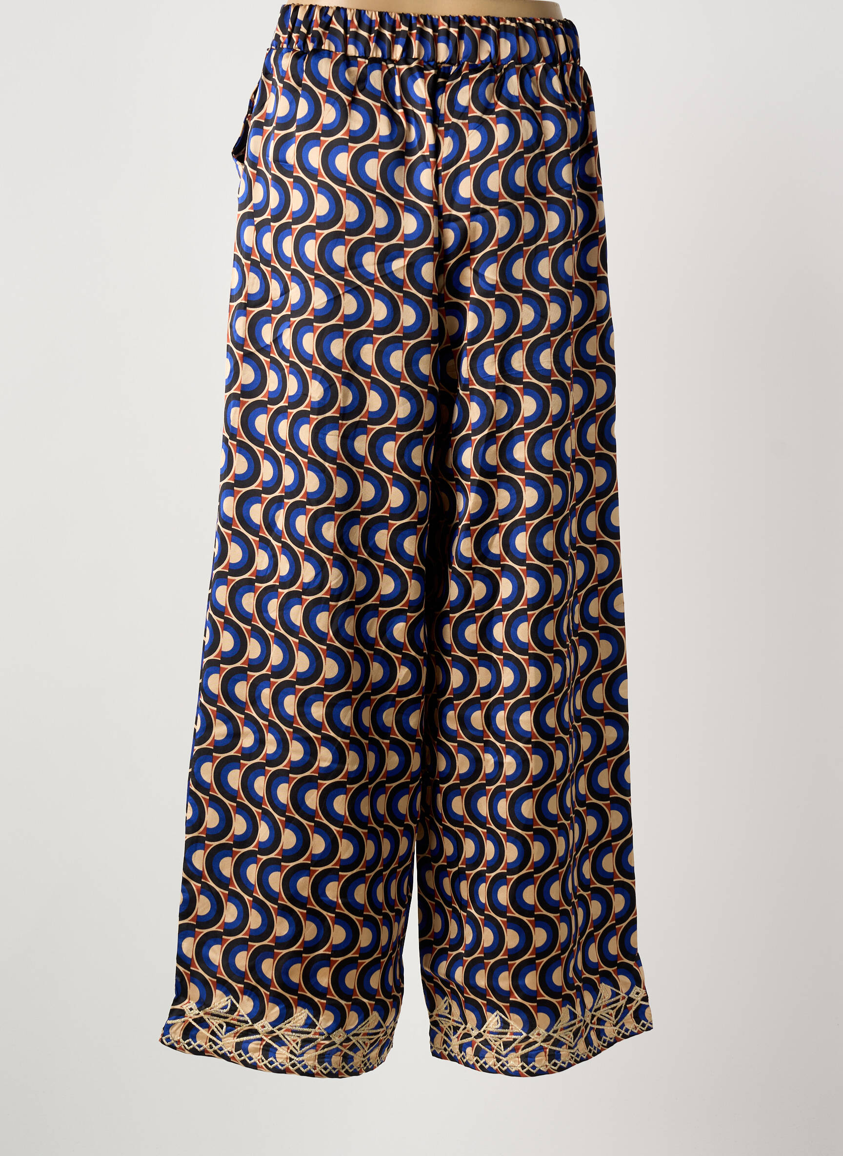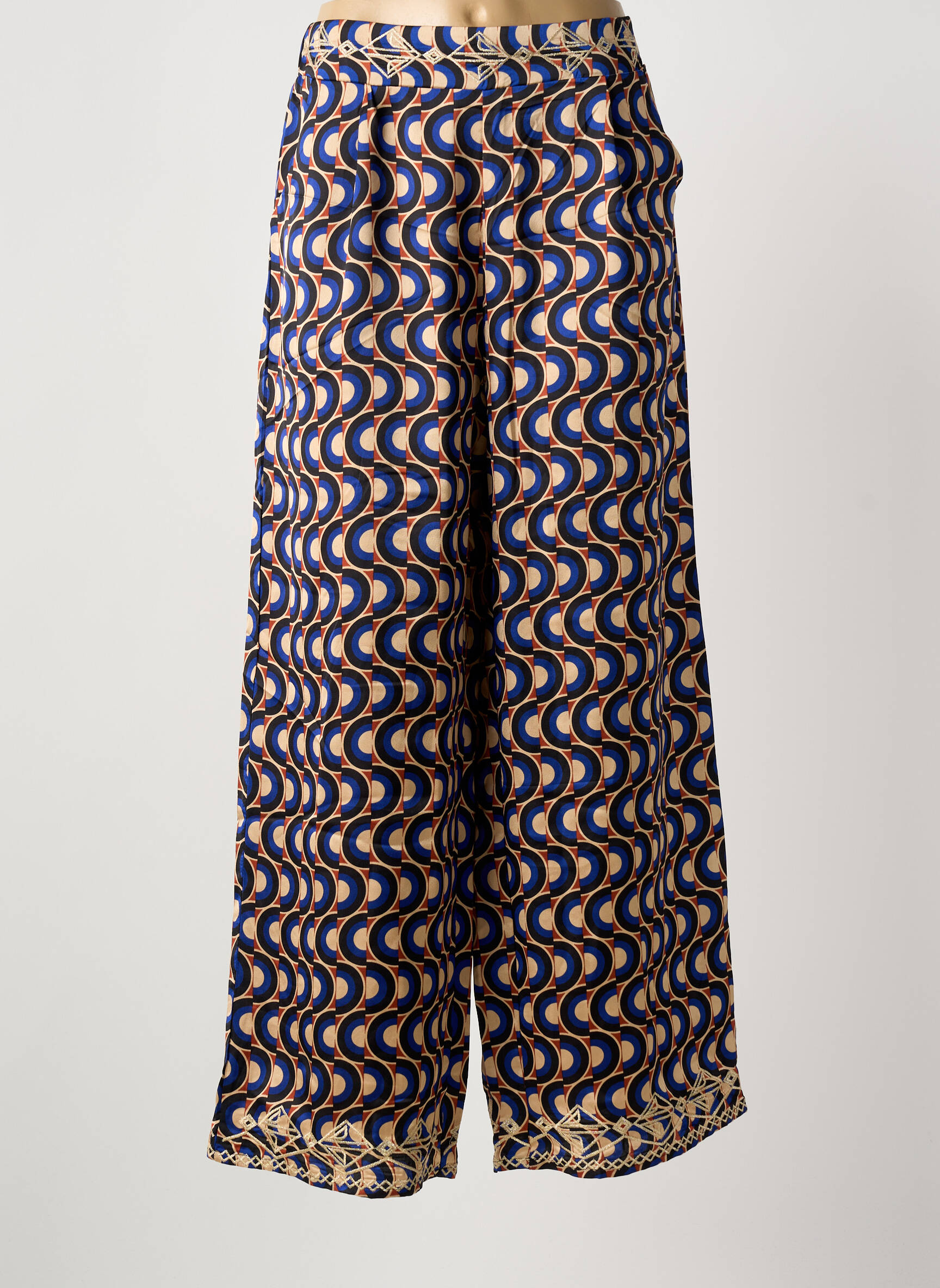 Voici le bon plan mode à ne pas manquer : adoptez un look tendance sans vous ruiner avec ce pantalon large pour femme signé MEISÏE, qui séduit par son imprimé graphique original mêlant des ondulations bleu marine et dorées pour une touche sophistiquée. La coupe ample assure un confort idéal tout en donnant de l’allure à votre silhouette, pour un effet à la fois élégant et décontracté, parfait pour personnaliser vos tenues du quotidien à prix tout doux.