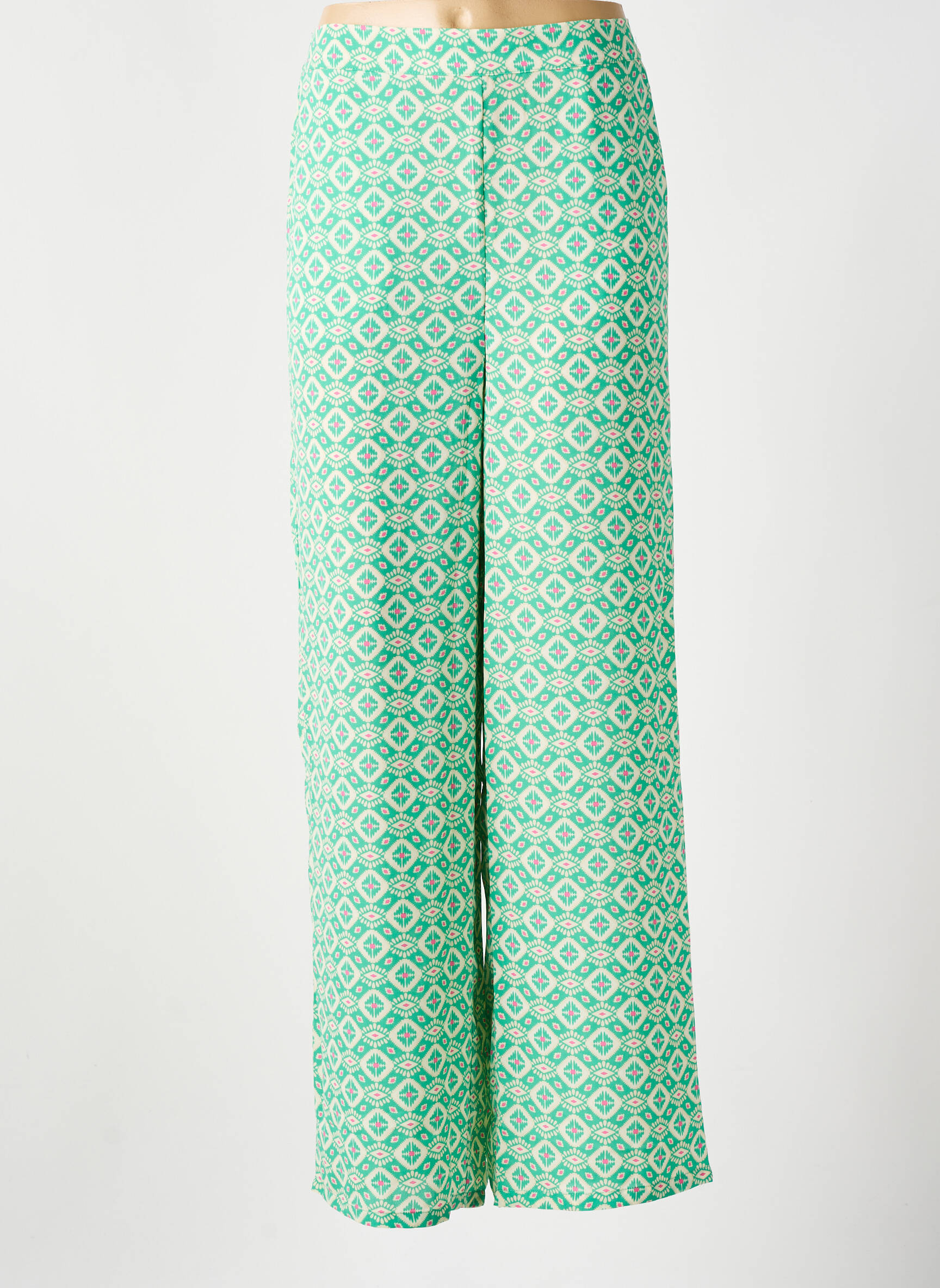 Craquez pour ce pantalon large de la marque ONLY, un bon plan mode qui allie style et petit prix avec son motif géométrique vert et blanc ultra tendance, sa coupe fluide et confortable qui assure une silhouette élégante en toutes circonstances, parfait pour rehausser votre dressing sans vous ruiner.