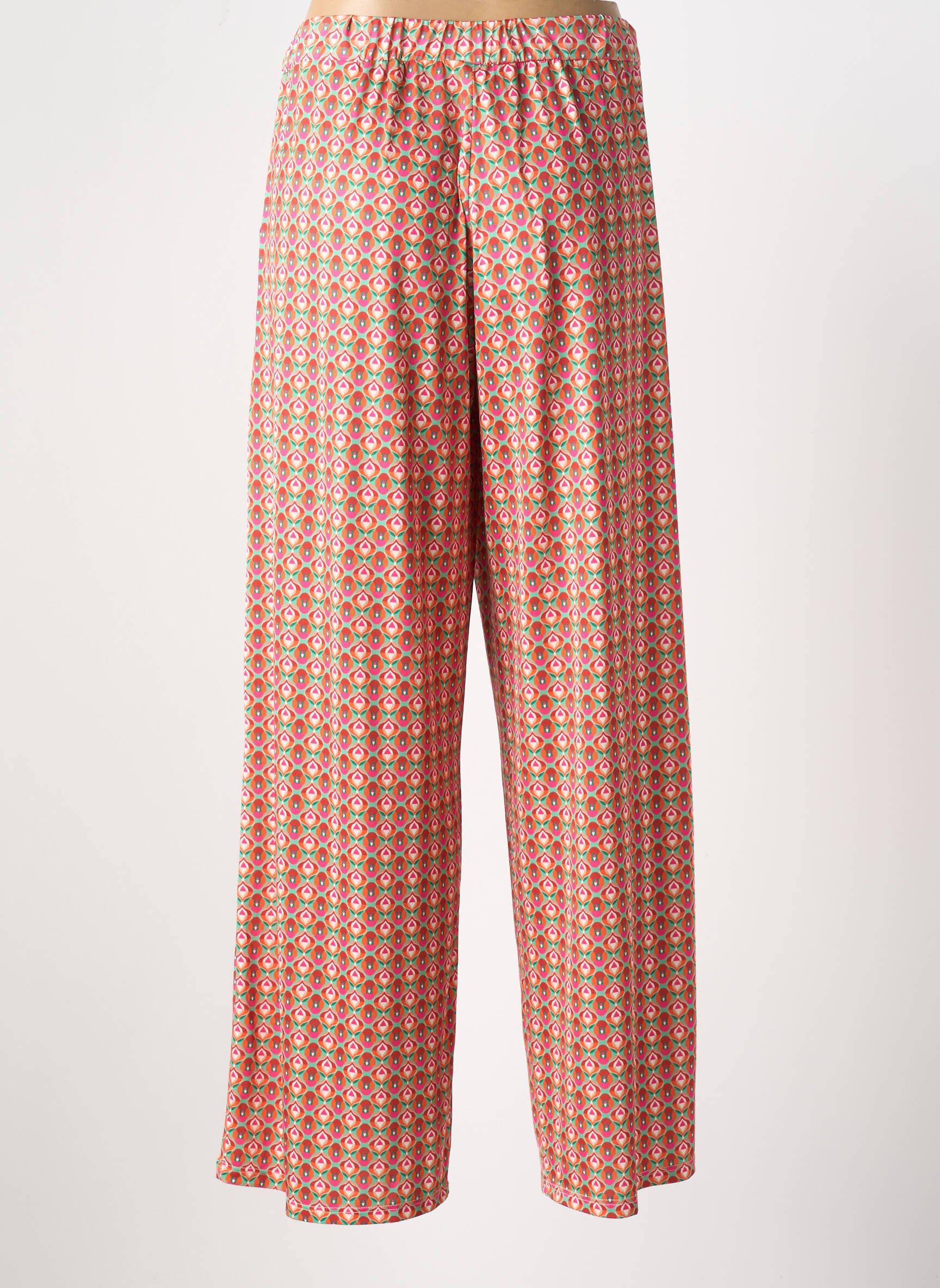 Ce pantalon se porte facilement avec un top uni pour équilibrer son motif dynamique, que vous choisissiez une blouse légère ou un t-shirt basique. Pour un look décontracté, une paire de sandales plates viendra compléter l’ensemble, tandis que des baskets blanches apporteront une touche urbaine. On peut aussi l’associer à une veste en jean ou un petit gilet pour les journées plus fraîches. Accessoirisé d’un sac cabas et de bijoux fins, il s’adapte à toutes vos envies de style, de la promenade en ville à une sortie entre amies.