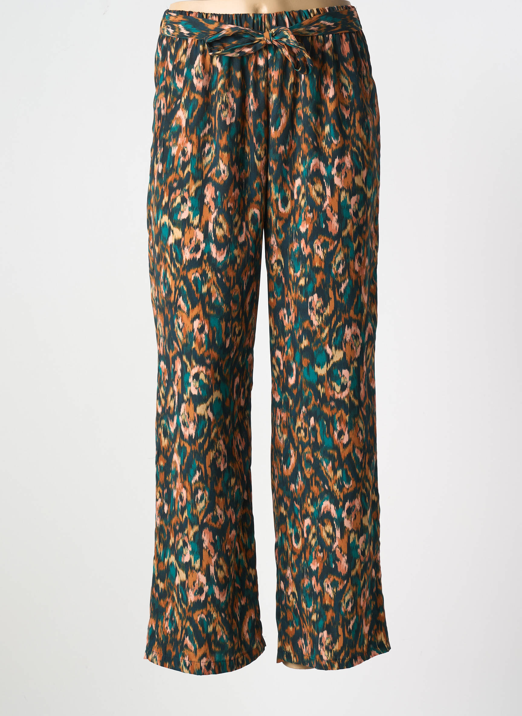 Ce pantalon se porte facilement avec un top uni ou un débardeur pour mettre en valeur son motif original tout en restant élégante. Il s’accorde très bien avec une veste courte ou un perfecto pour une allure plus moderne. À vos pieds, choisissez des sandales pour un look estival ou des baskets blanches pour une touche décontractée. Accessoirisez avec une ceinture fine et un sac cabas pour compléter votre tenue avec style sans dépasser votre budget.