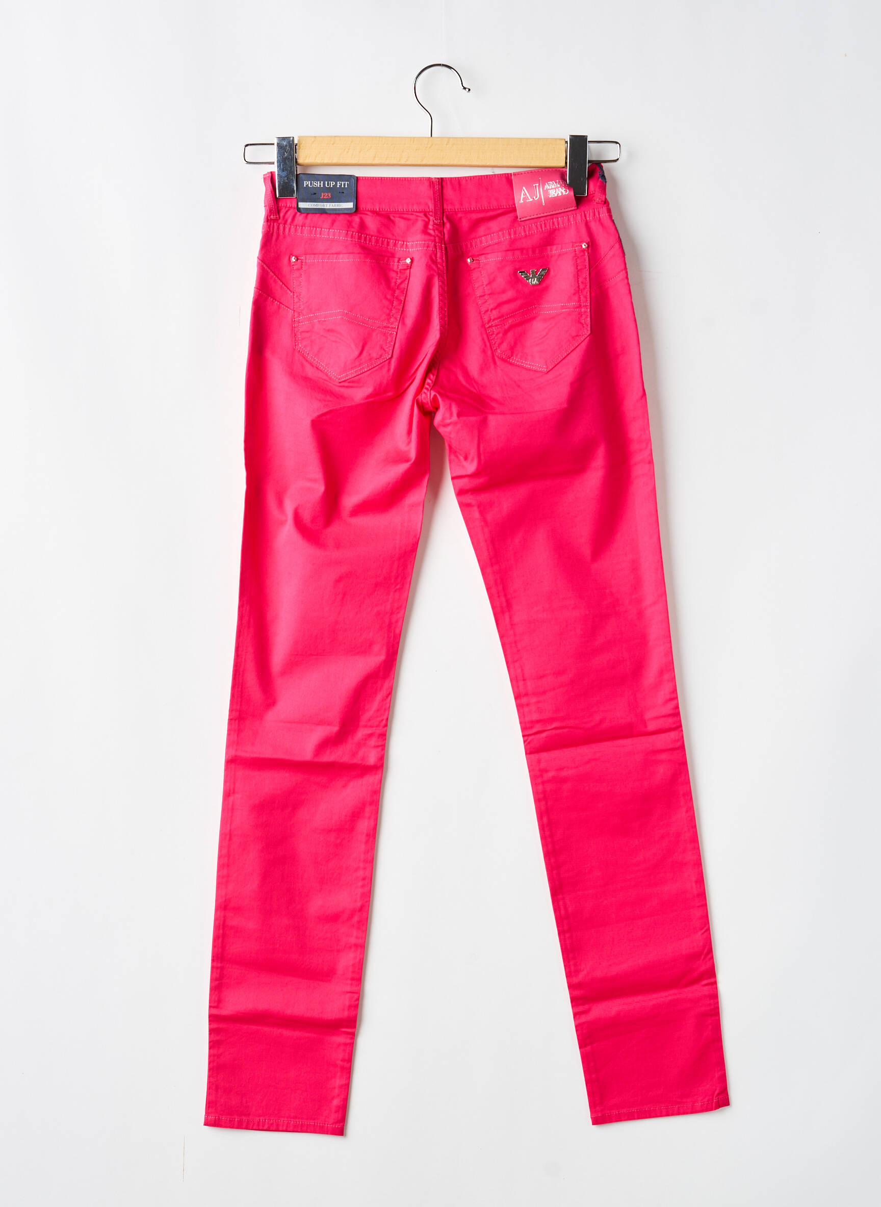 Profitez d’un vrai bon plan mode avec ce pantalon slim pour femme de la marque ARMANI, affichant une élégante coupe près du corps et une belle teinte rose fuchsia, parfait pour dynamiser vos tenues quotidiennes à petit prix. Ce modèle met en valeur la silhouette tout en assurant un confort optimal au quotidien, un choix idéal pour celles qui recherchent le style sans se ruiner.