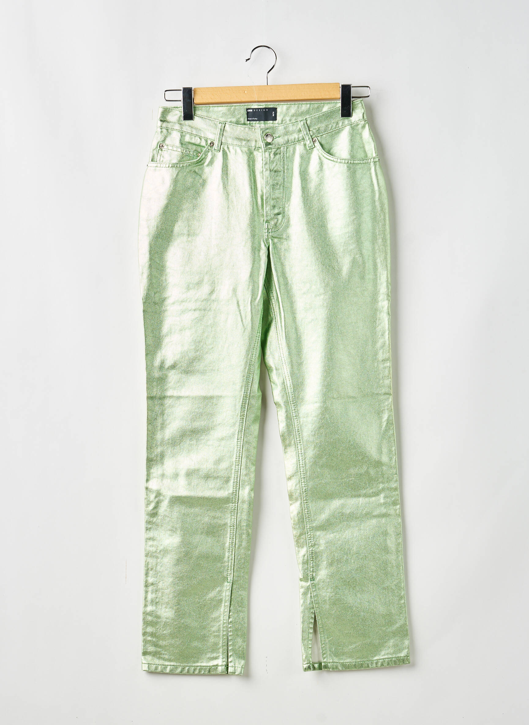 Profitez d’une véritable affaire avec ce pantalon slim de la marque ASSO pour femme, proposé ici à prix mini pour donner du style à votre garde-robe sans vous ruiner. Sa coupe ajustée épouse la silhouette tout en mettant en valeur la taille, et sa finition métallisée vert clair apporte une touche de modernité et d’originalité, idéale pour se démarquer avec un look tendance, quel que soit l’occasion.