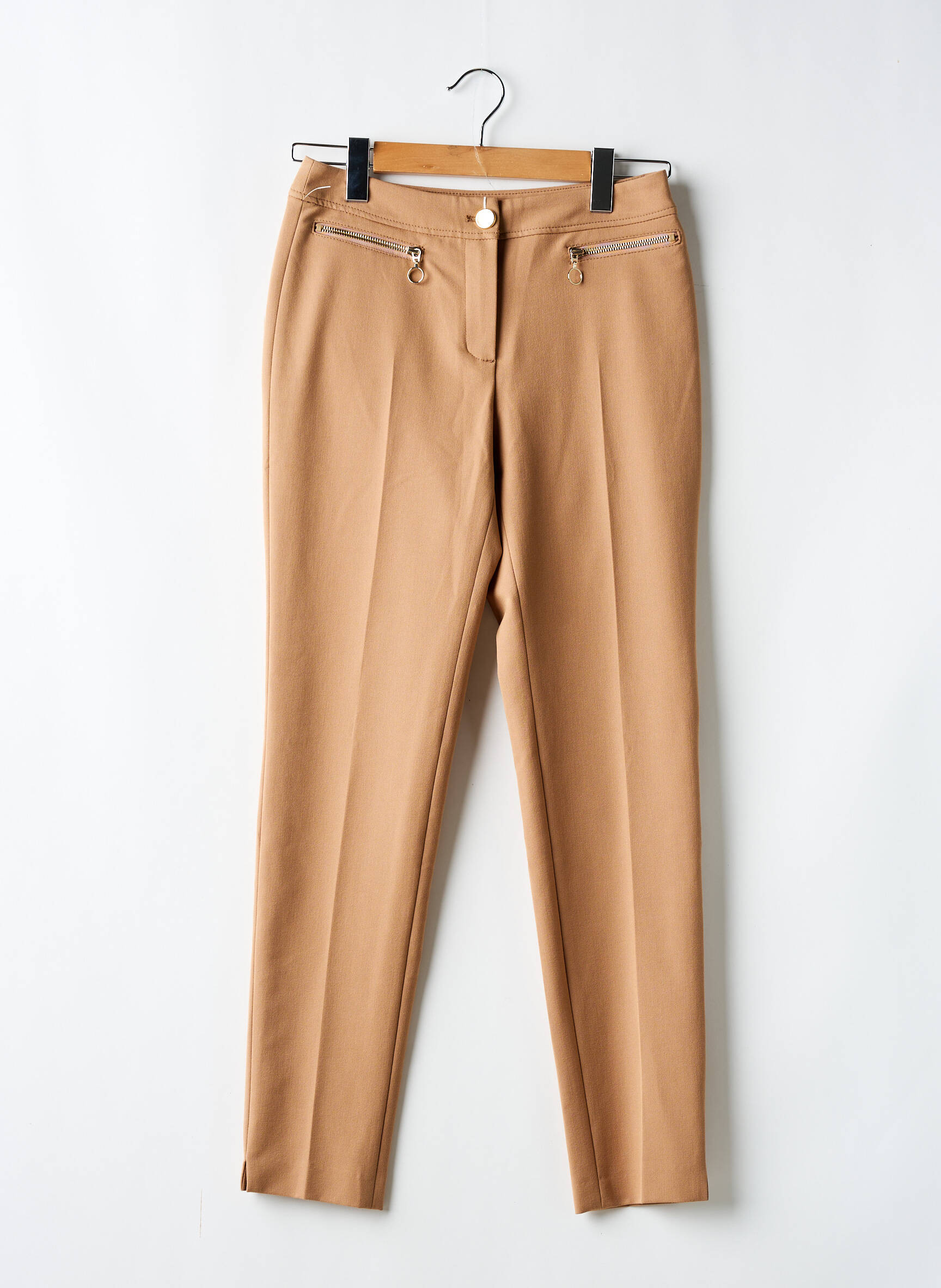 Profitez d’un vrai bon plan avec ce pantalon slim signé BETTY BARCLAY, qui allie élégance et modernité à petit prix. Sa coupe ajustée mettra en valeur votre silhouette, tandis que sa teinte camel facile à assortir s’adapte à toutes les envies mode, du bureau à vos sorties plus décontractées. Les détails de zips dorés ajoutent une note tendance et contemporaine, parfait pour un look raffiné sans se ruiner. C’est l’occasion de s’offrir une pièce chic de marque à prix tout doux.