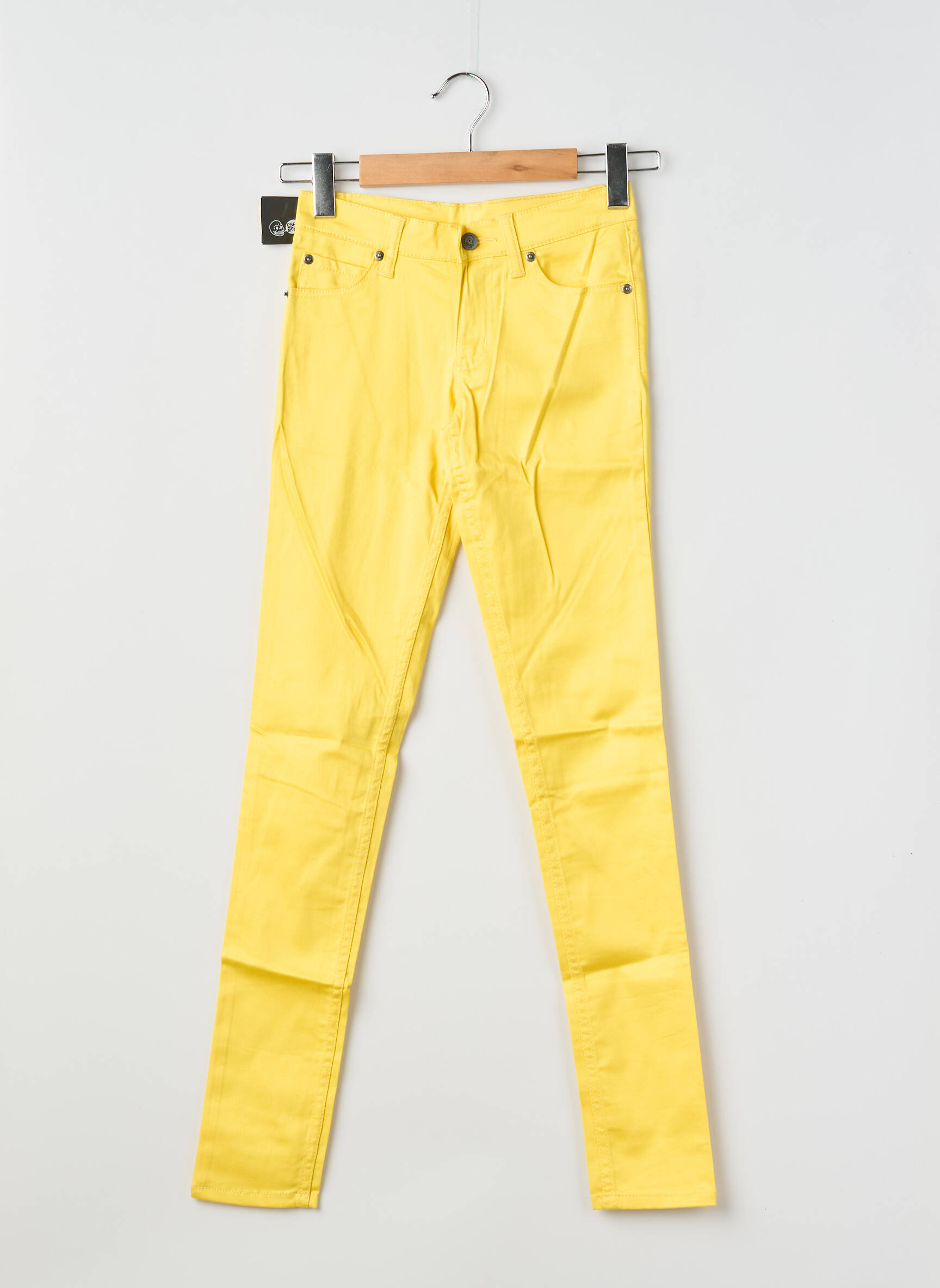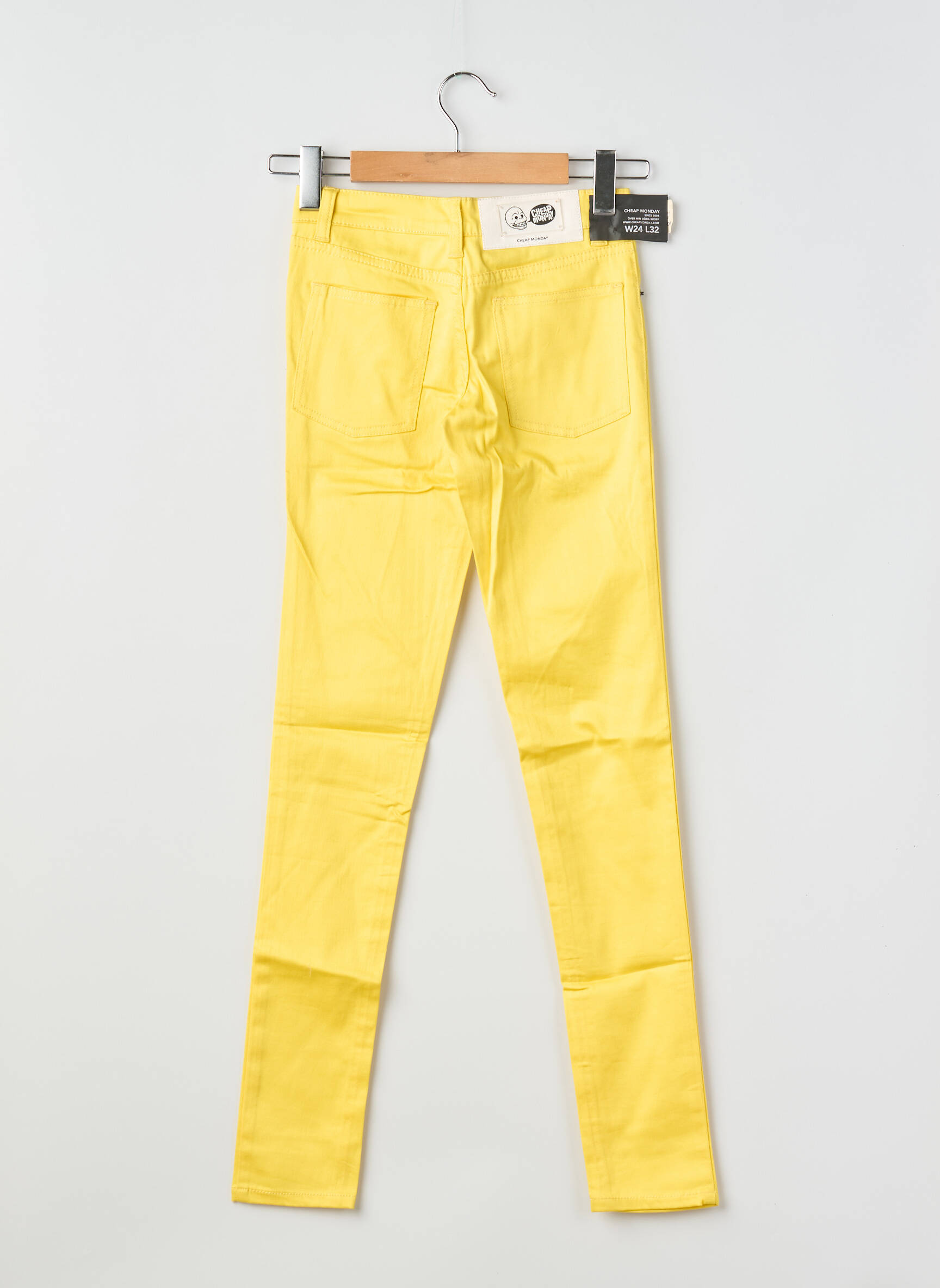 Profitez d’un vrai bon plan avec ce pantalon slim pour femme signé CHEAP MONDAY, une pièce tendance à petit prix idéale pour celles qui aiment jouer avec la couleur sans se ruiner. Sa coupe ajustée sublime les jambes tandis que son coloris jaune éclatant apporte une touche de fraîcheur et d’originalité à toutes vos tenues, parfait pour illuminer votre dressing sans dépasser votre budget.