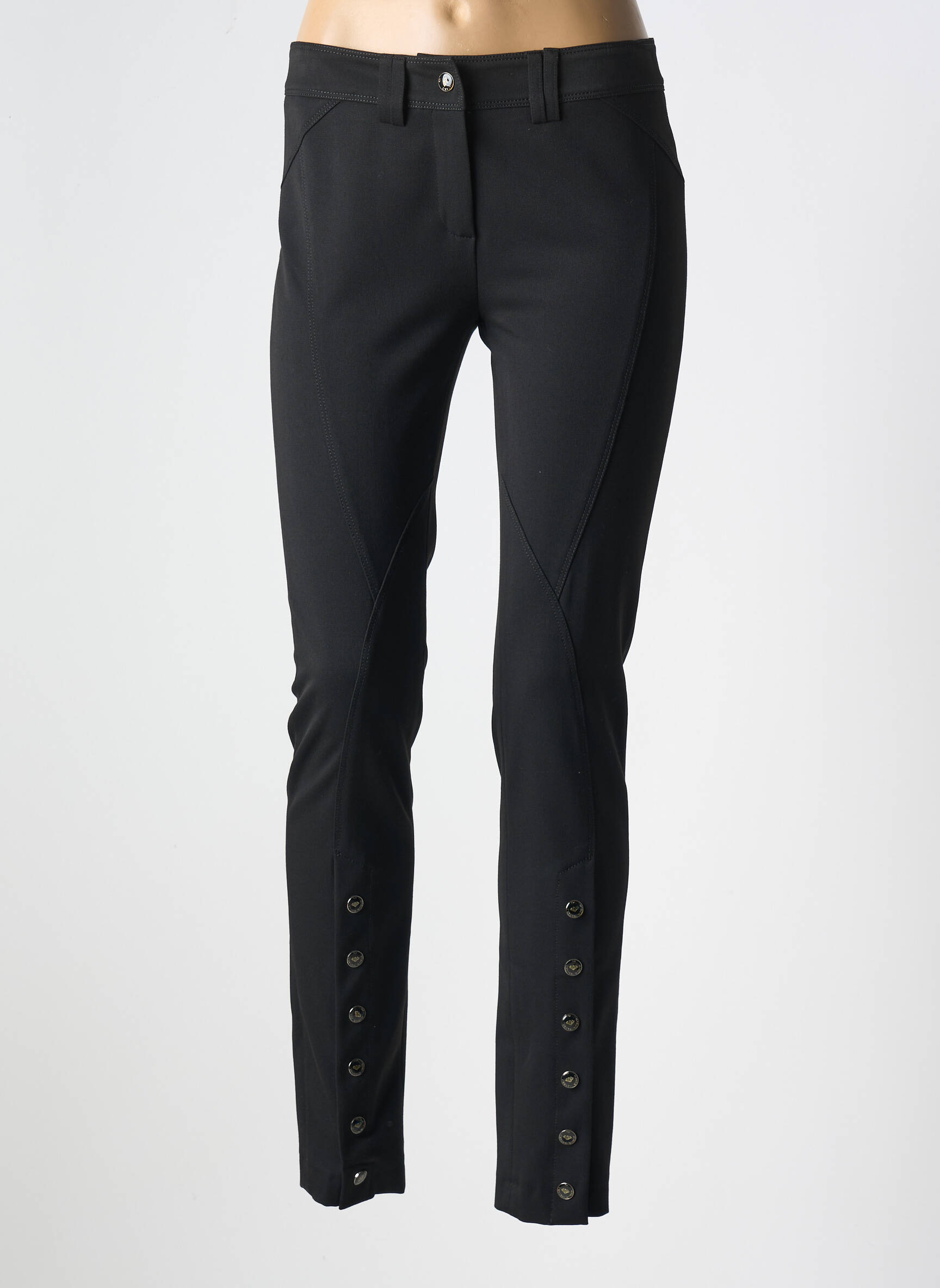 Profitez d’un bon plan mode en optant pour ce pantalon slim CRYSTAL WORLD pour femme, un modèle élégant à petit prix qui sublime la silhouette grâce à sa coupe ajustée et ses détails tendance. Sa couleur noire sobre et ses boutons décoratifs argentés sur le bas des jambes apportent une touche sophistiquée sans effort, idéale pour créer des looks chics ou décontractés tout en préservant votre budget.