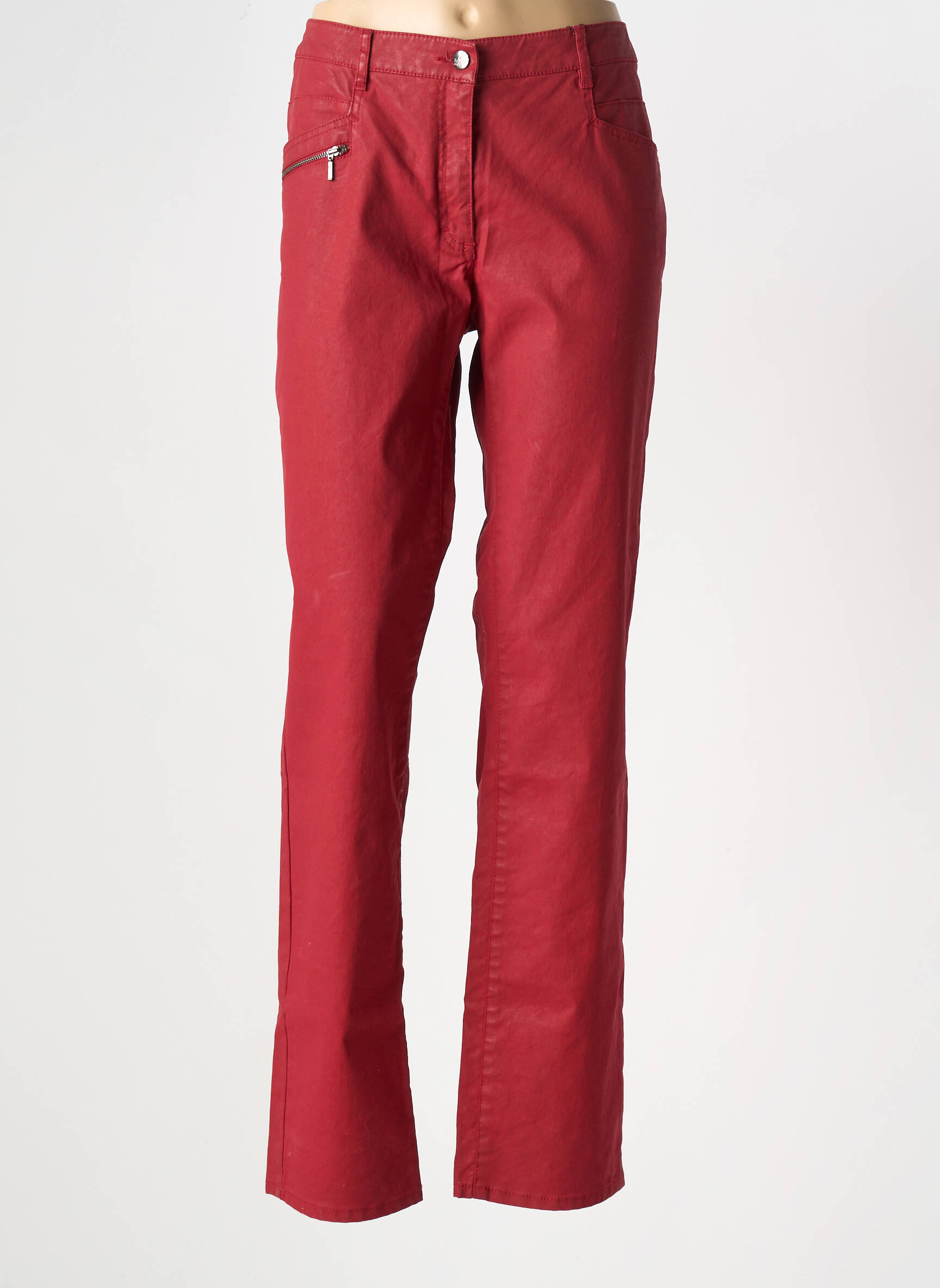 Profitez d’un bon plan mode avec ce pantalon slim pour femme de la marque FLEUR DE SEL, qui allie élégance et modernité grâce à sa coupe ajustée et sa teinte rouge intense. Sa fermeture zippée originale sur l’avant apporte une touche tendance et son design parfaitement pensé sublime la silhouette, idéal pour dynamiser vos tenues du quotidien à prix mini.