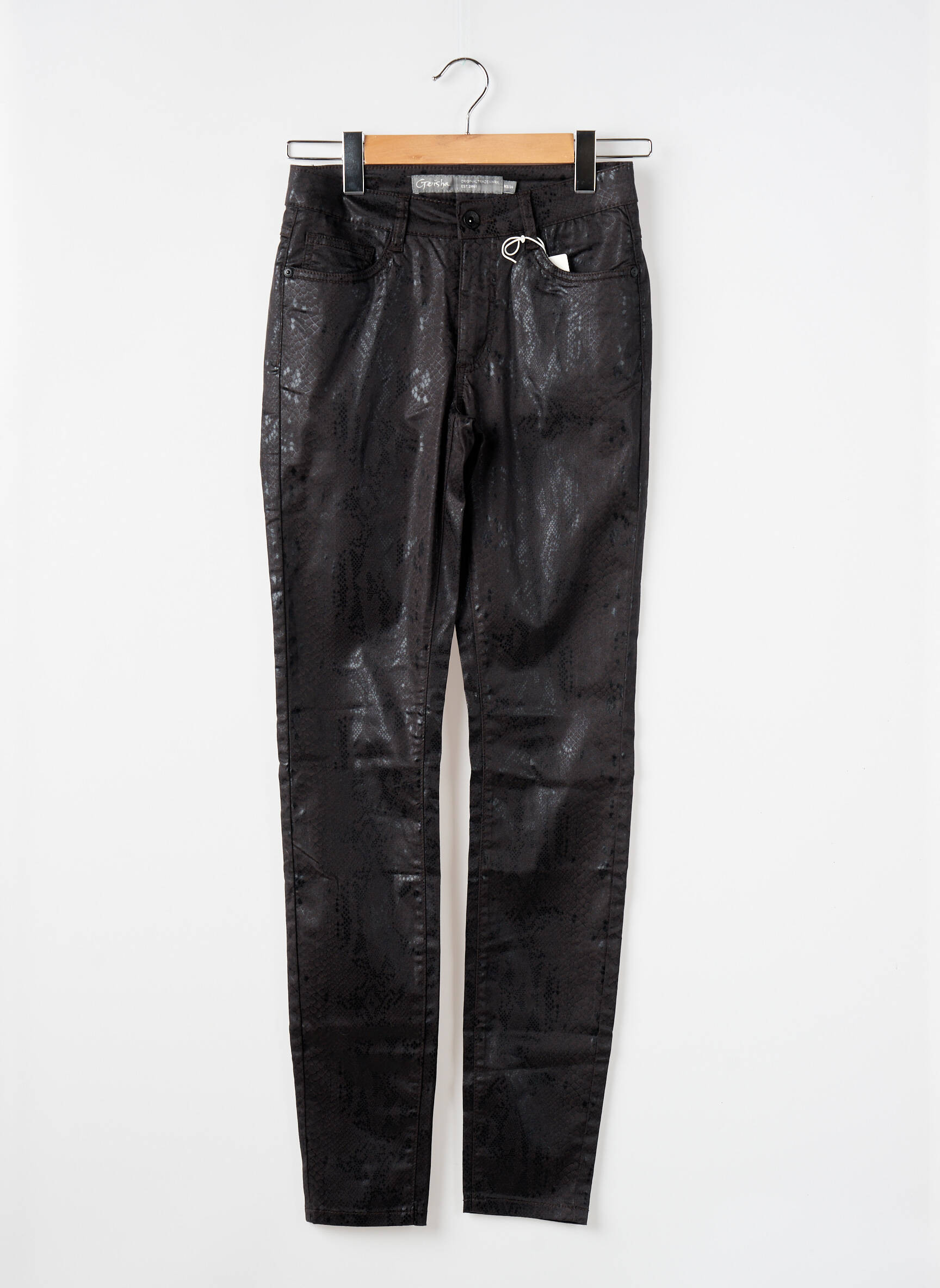 Profitez d'une véritable bonne affaire avec ce pantalon slim pour femme de la marque GEISHA, à saisir à petit prix pour un look tendance sans compromis. Sa coupe ajustée sublime la silhouette tandis que sa finition brillante façon cuir ajoute immédiatement une touche mode et sophistiquée à vos tenues du quotidien ou de soirée. C'est l'occasion idéale de vous offrir un pantalon de créateur à prix réduit, parfait pour renouveler votre dressing sans vous ruiner.