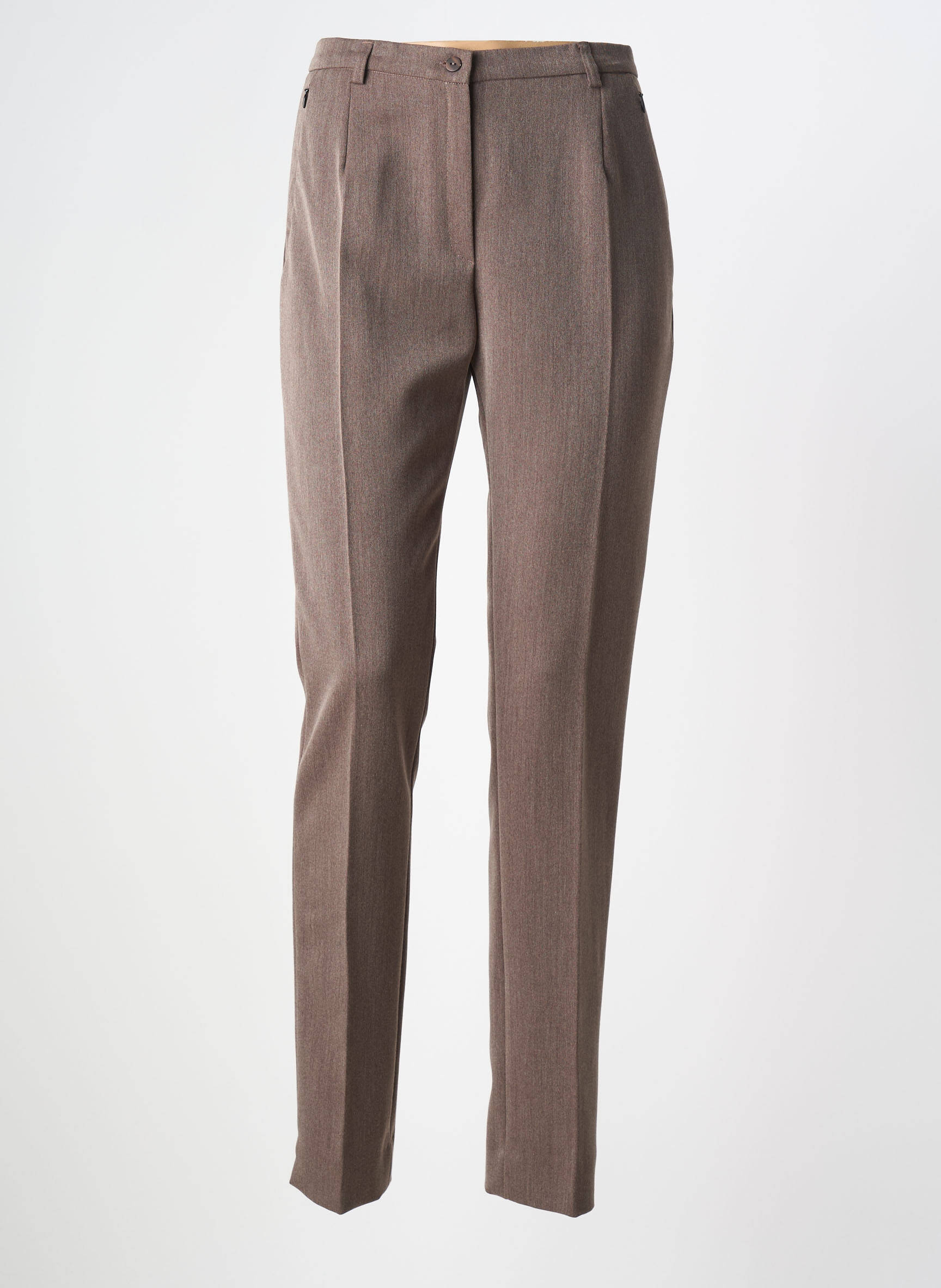 Profitez d'une belle opportunité pour accessoiriser votre dressing avec ce pantalon slim de la marque GUY DUBOUIS, parfait pour celles qui recherchent une allure élégante et moderne sans se ruiner ; sa coupe ajustée met en valeur la silhouette tandis que sa teinte marron sobre s’accorde facilement avec tous vos hauts favoris, pour un style chic à petit prix.