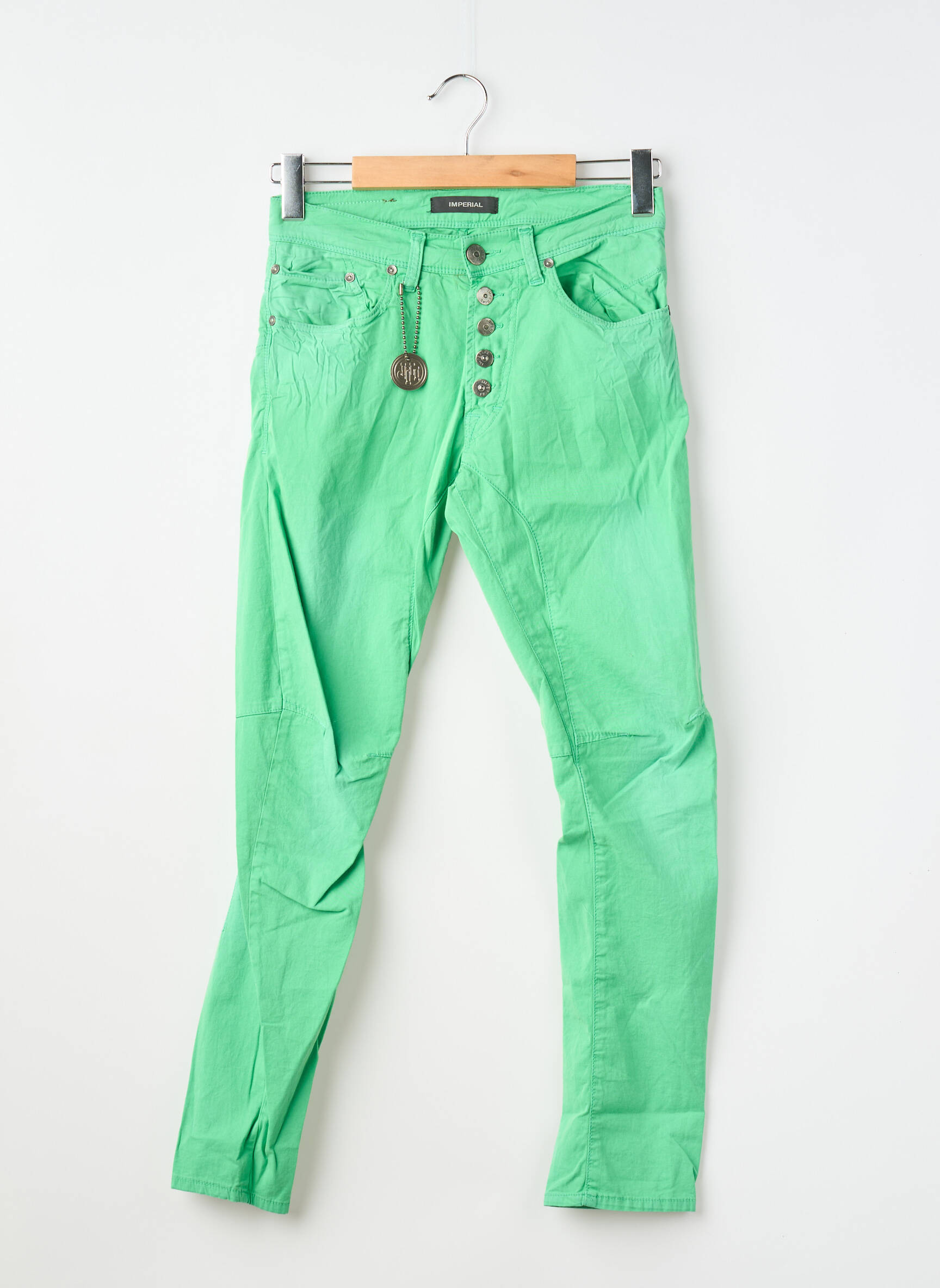 Offrez-vous un pantalon slim de la marque IMPERIAL à prix doux et mettez une touche de fraîcheur dans votre dressing avec cette belle pièce couleur vert anis, idéale pour celles qui cherchent un look moderne sans se ruiner. Sa coupe ajustée sublime la silhouette tout en apportant une note tendance grâce à ses boutons décoratifs apparents à la taille et son allure résolument actuelle. Parfait pour composer des looks vitaminés à petit prix, ce pantalon vous permettra de profiter de la qualité IMPERIAL à un tarif imbattable.