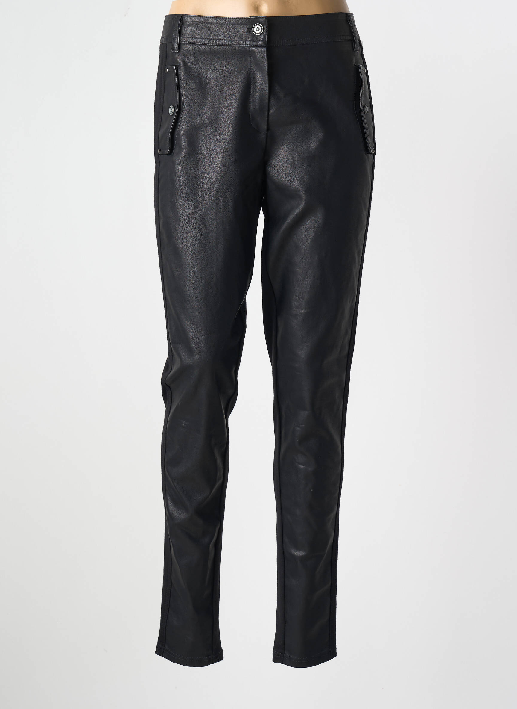 Profitez d'une vraie bonne affaire avec ce pantalon slim pour femme de la marque INNATE qui allie parfaitement style moderne et prix mini. Sa coupe ajustée met en valeur la silhouette tout en offrant un look tendance grâce à son effet cuir noir et ses détails de poches pressionnées qui ajoutent une touche d’originalité à l’ensemble, idéal pour un dressing chic sans se ruiner.