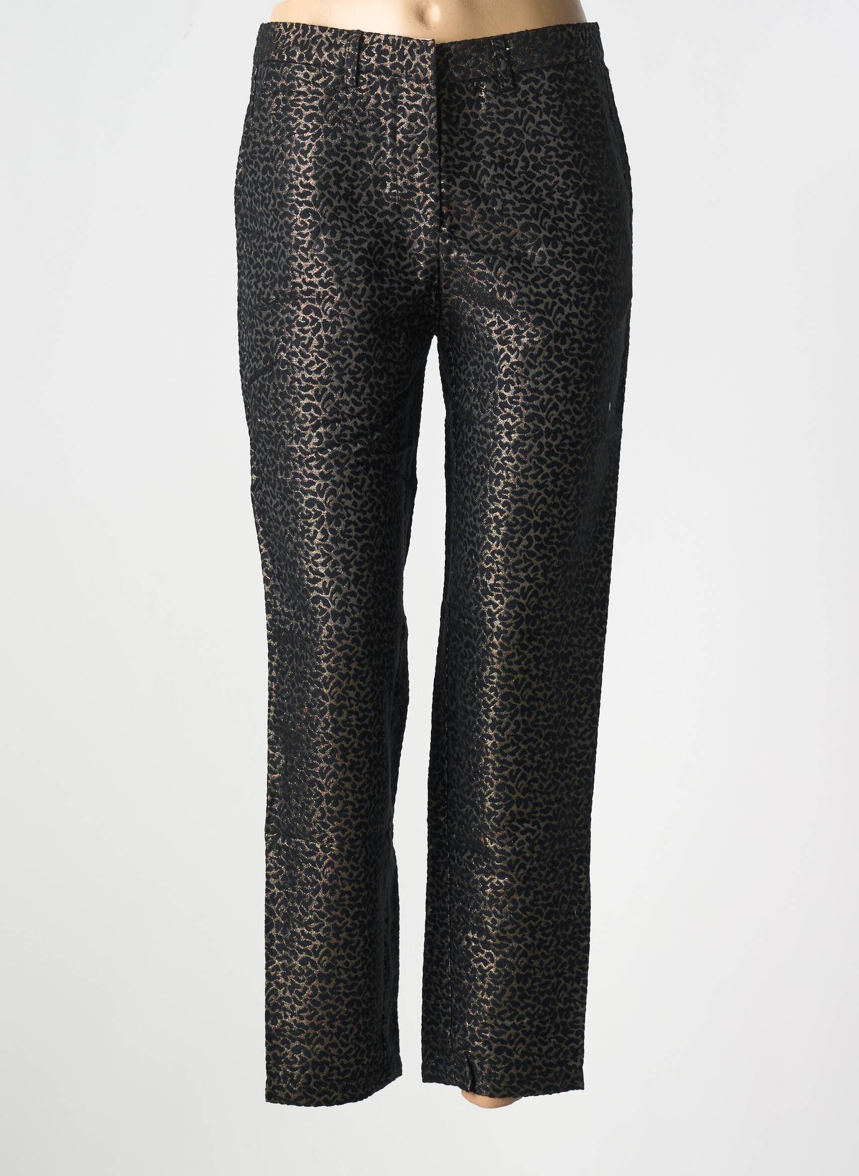 Ce pantalon peut facilement se porter avec un top noir uni pour un look chic et intemporel ou une blouse fluide pour un effet plus décontracté. N’hésitez pas à ajouter une veste cintrée ou un blazer pour apporter une touche sophistiquée et des chaussures à talons pour allonger la silhouette. Côté accessoires, privilégiez une petite pochette et des bijoux discrets pour mettre en valeur le motif sans en faire trop, idéal pour une soirée ou une sortie entre amis.