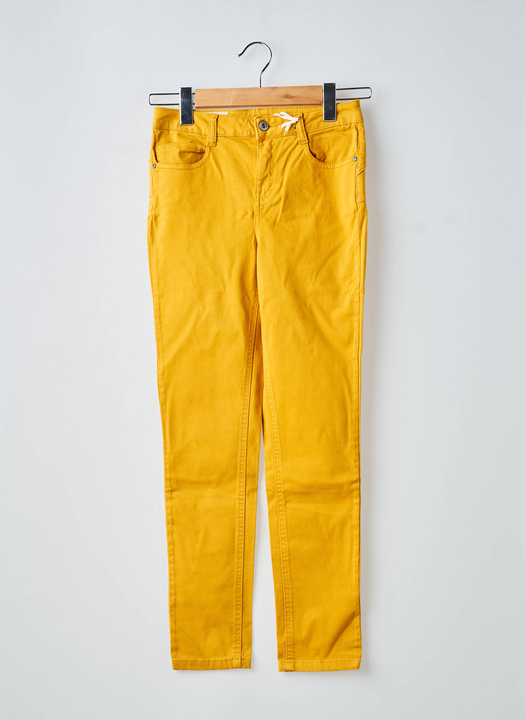 Ce pantalon slim jaune se marie parfaitement avec un haut blanc ou une chemise en jean pour un esprit décontracté, ou encore avec un pull léger aux tons neutres pour un look plus doux. On peut aussi oser un contraste chic en l’associant à une veste structurée noire ou marine, tandis que des baskets blanches ou des sandales permettrons d’accentuer son allure moderne et fraîche. Accessoirisez votre tenue avec un sac sobre pour équilibrer la couleur et quelques bijoux dorés pour apporter une touche d’éclat supplémentaire.