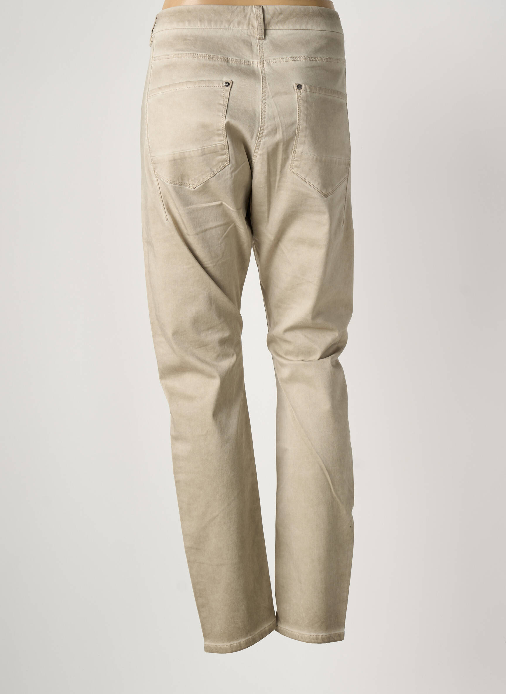 Pantalon Slim Sandwich Beige Taille Normale