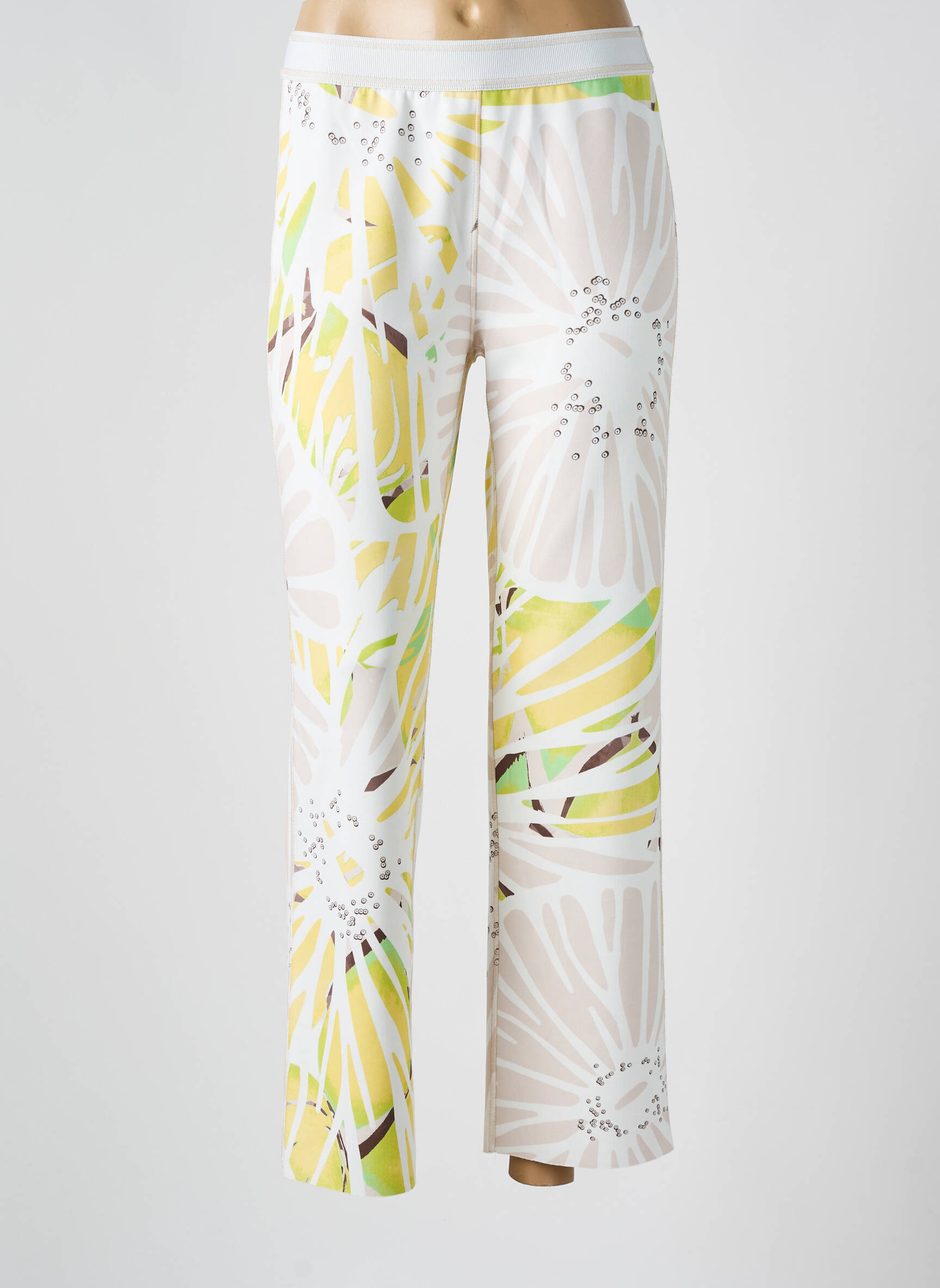 Pour adopter un look tendance avec ce pantalon TUZZI, privilégiez un haut uni dans une teinte claire ou pastel pour laisser le motif s’exprimer pleinement. Ajoutez une paire de sandales ou de sneakers blanches pour une allure décontractée, ou misez sur des chaussures à talon pour un effet plus sophistiqué. Un blazer légèrement cintré ou une veste légère rehaussera l’ensemble, tandis qu’un sac à main coloré viendra compléter votre tenue avec modernité. Ce modèle s’adapte aussi parfaitement à un style casual chic pour vos journées en ville ou une sortie entre amies.