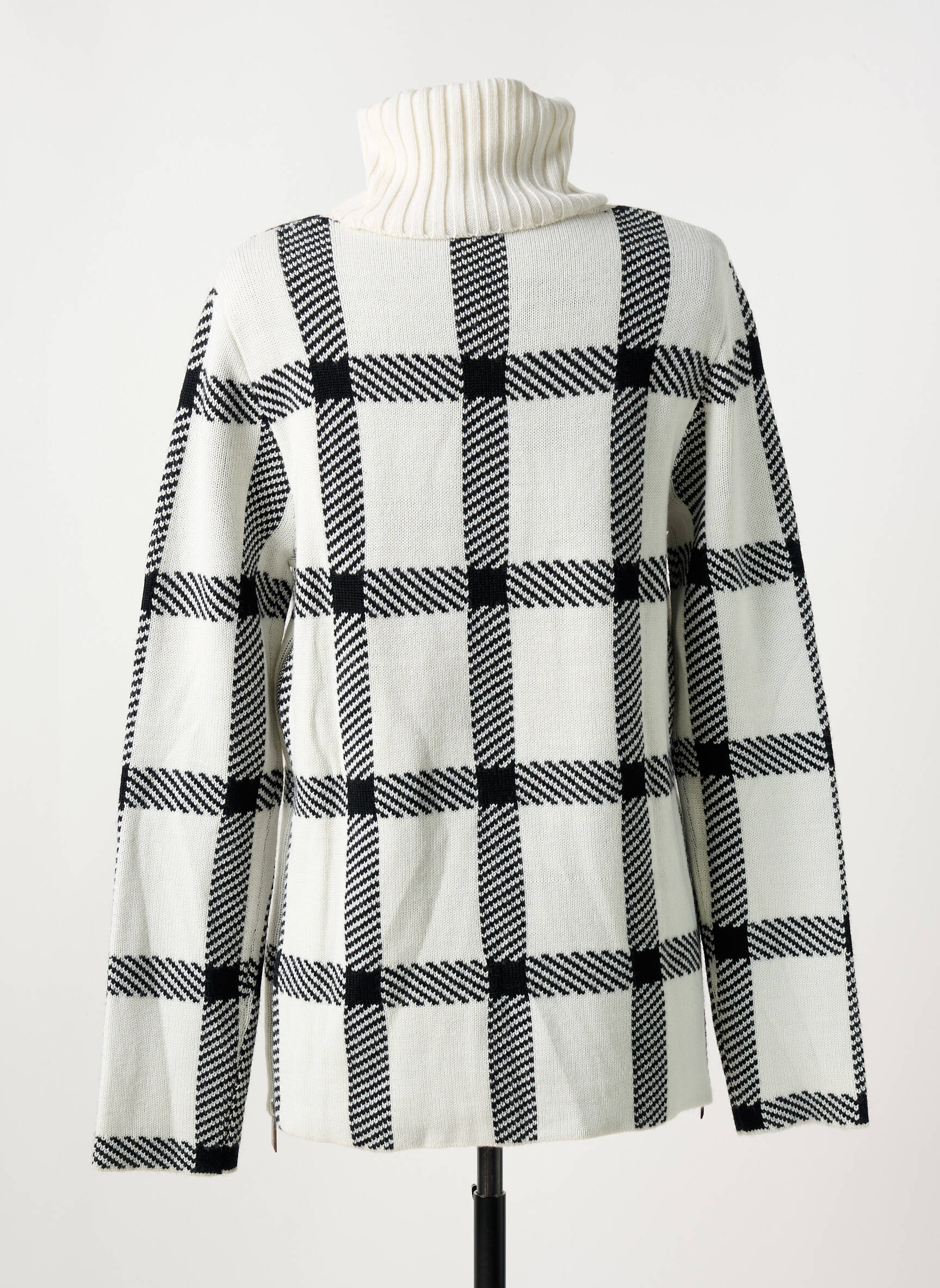 Profitez d’un véritable bon plan avec ce pull col roulé de la marque Barbara Bui, qui allie élégance et confort à prix réduit. Son motif à grands carreaux noirs et blancs apporte une touche graphique résolument moderne, tandis que le col roulé épais et cosy vous garantit chaleur et style tout au long de la saison. C’est l’occasion idéale de vous offrir une pièce tendance signée d’une grande maison, sans vous ruiner.