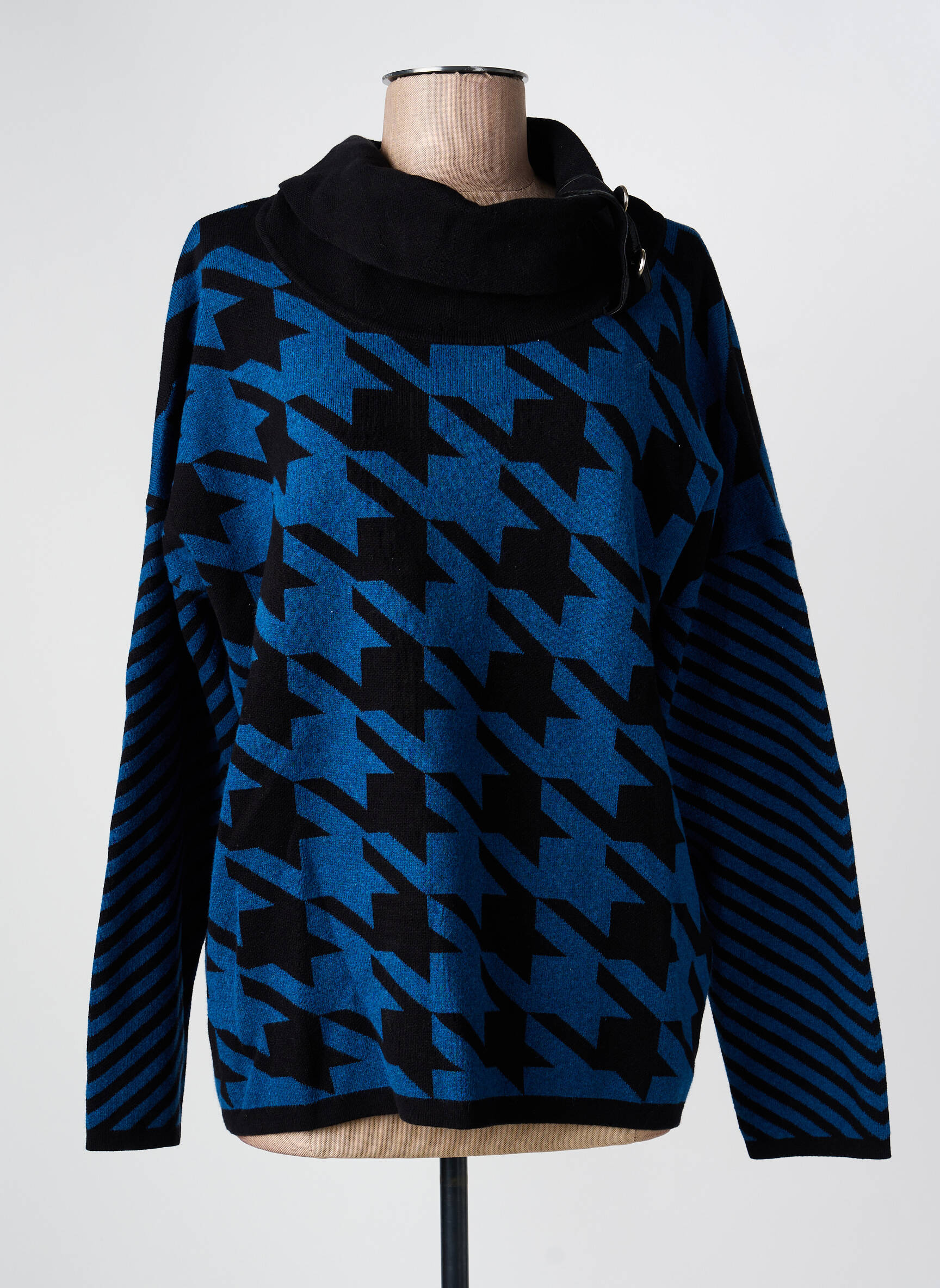 Profitez d’un excellent rapport qualité-prix avec ce pull col roulé signé MARBLE, un choix tendance pour renouveler votre garde-robe à petit prix. Ce modèle séduit par son motif pied-de-poule revisité en bleu et noir, rehaussé par un col roulé large et souple agrémenté d'une boucle décorative, parfait pour vous envelopper de douceur tout en affichant un look moderne et graphique. C’est l’opportunité idéale pour adopter une pièce originale et stylée sans faire de compromis sur votre budget.