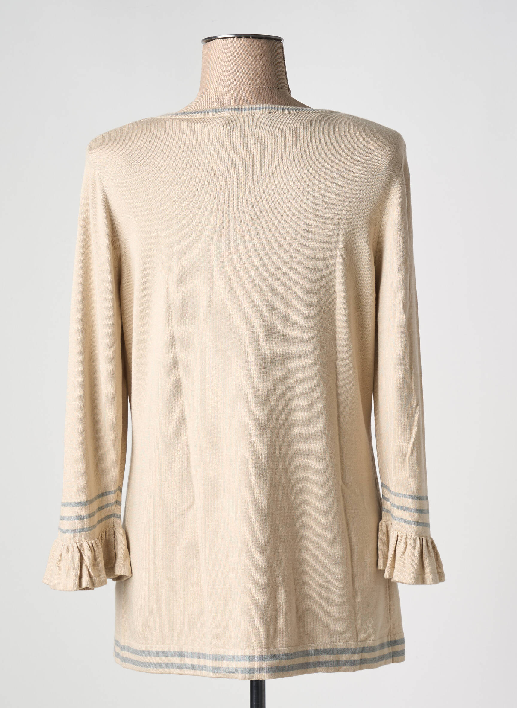 Profitez d'une véritable opportunité avec ce pull tunique EUGEN KLEIN pour femme, un incontournable à petit prix qui allie élégance et confort au quotidien. Sa coupe fluide met en valeur toutes les silhouettes tandis que les délicates finitions rayées au col, aux poignets et à la base apportent une touche de modernité discrète. Les manches légèrement évasées ornées de volants donnent au modèle une note féminine et raffinée, idéale aussi bien pour une tenue décontractée que plus habillée. Ce bon plan mode vous permet de vous offrir une pièce de qualité sans vous ruiner.