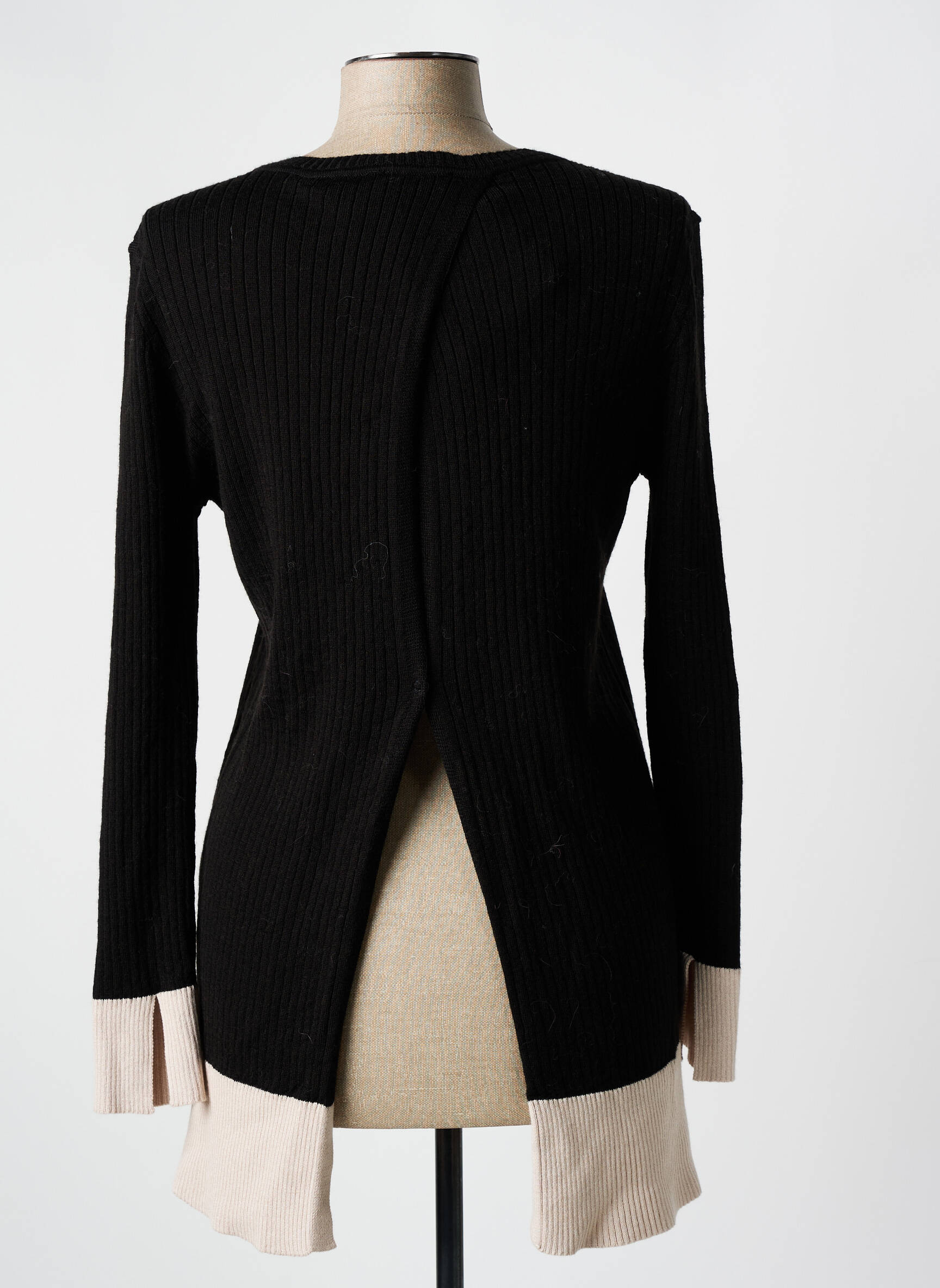 Plongez dans une atmosphère de confort chic avec ce sweat-shirt audacieux de la marque MARIA BELLENTANI. Sa texture côtelée et son design à coupe allongée créent une silhouette élancée, tandis que le contraste subtil entre le noir profond et le beige délicat en bas ajoute une touche d'élégance. La simplicité de son encolure ronde se marie parfaitement avec les manches longues, mettant en valeur un style à la fois décontracté et raffiné, idéal pour les jours où vous souhaitez vous sentir à la fois stylée et à l'aise. Ce modèle se prête aussi bien à une tenue quotidienne qu'à une sortie plus habillée, offrant ainsi une polyvalence remarquable à votre garde-robe.