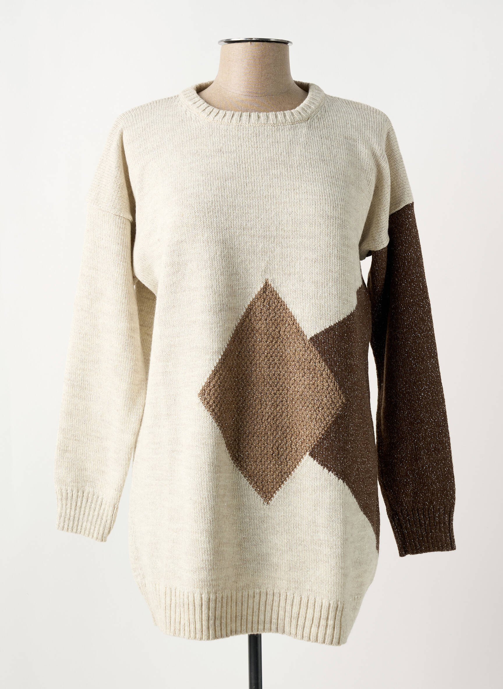 Craquez pour ce pull tunique OMC pour femme, une pièce tendance à petit prix qui vous permet de renouveler votre garde-robe sans vous ruiner. Avec son joli jeu de couleurs beige et marron, ce modèle mise sur l’originalité d’un large losange contrastant à l’avant et une manche assortie, tout en garantissant confort et douceur pour tous les jours. Profitez d’un bon plan incontournable pour un look décontracté et stylé à prix mini.