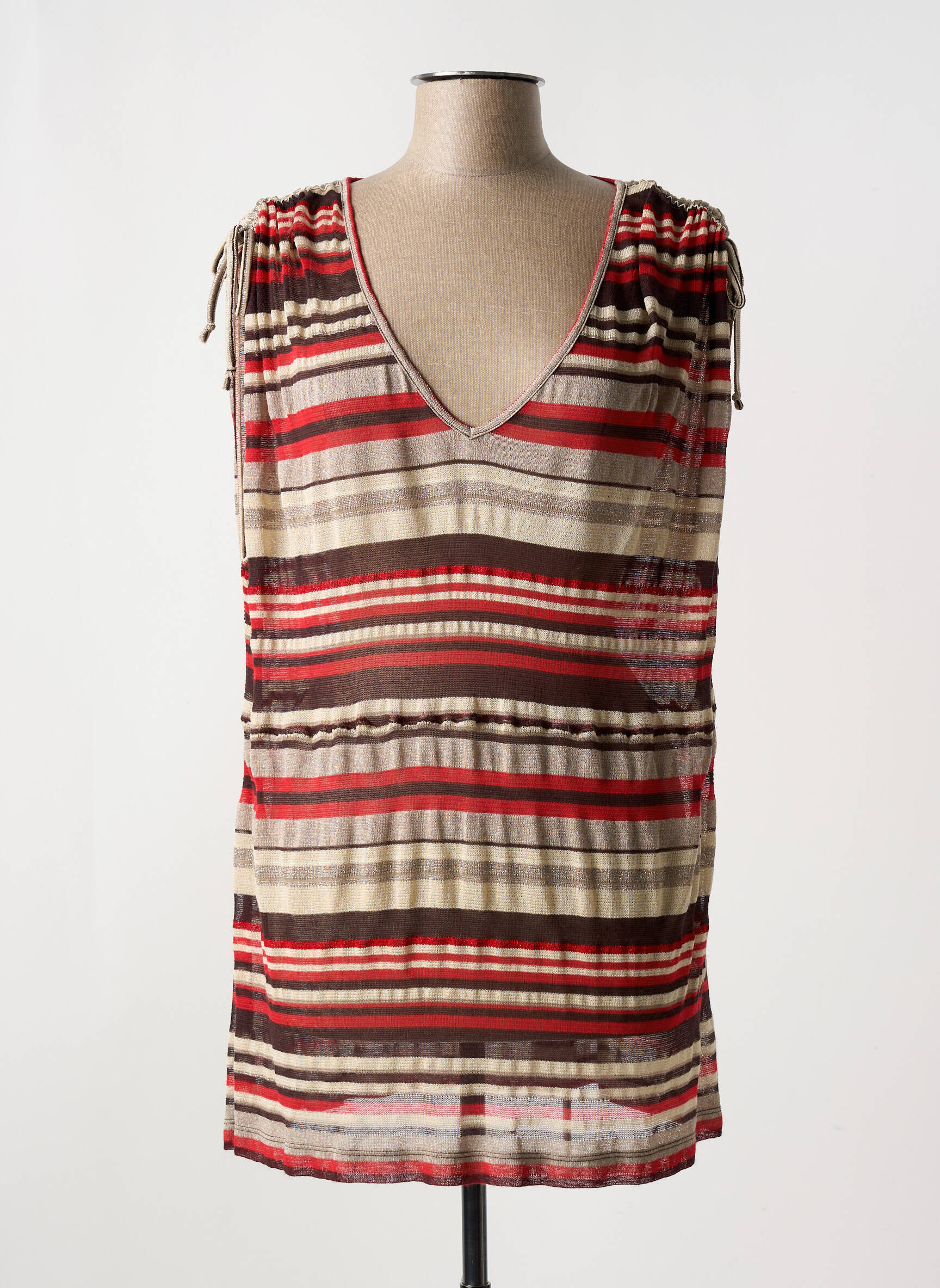Craquez pour ce pull tunique PENNYBLACK à prix mini, une pièce mode au style décontracté qui s’impose comme un véritable bon plan. Ses rayures multicolores dans les tons rouge, beige, brun et noir apportent une touche dynamique à votre garde-robe, tandis que sa coupe ample et son joli décolleté en V assurent un confort maximal au quotidien. Ce haut à l’allure bohème, rehaussé de liens ajustables sur les épaules, se porte aussi bien en solo qu’en superposition pour s’adapter à toutes vos envies, sans jamais faire de compromis sur le style ou le budget.