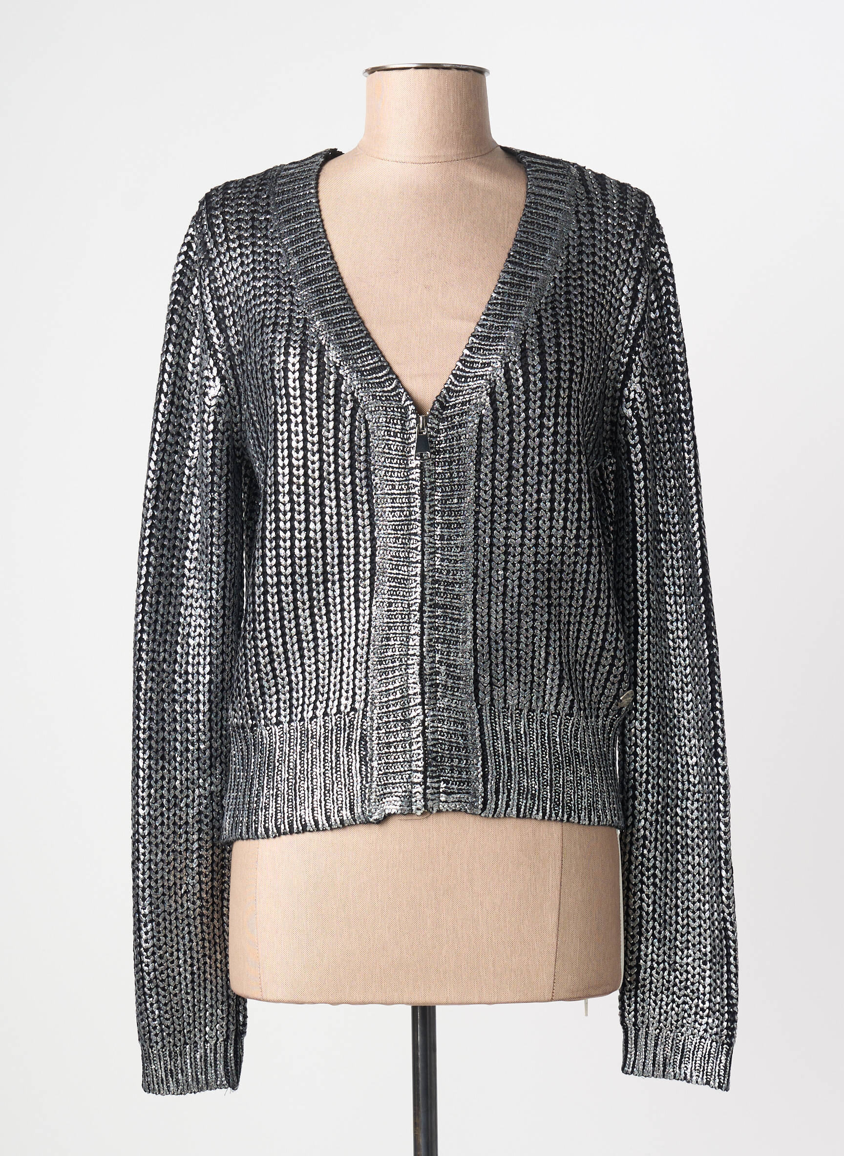 Ce gilet se glisse facilement sur un débardeur ou un petit top uni pour un effet contraste très actuel, et il se marie aussi bien avec un jean slim qu’avec une jupe taille haute pour jouer sur les volumes. Ajoutez une paire de bottines ou des baskets pour une allure décontractée, ou optez pour des accessoires argentés pour rehausser son côté lumineux lors d’une soirée.