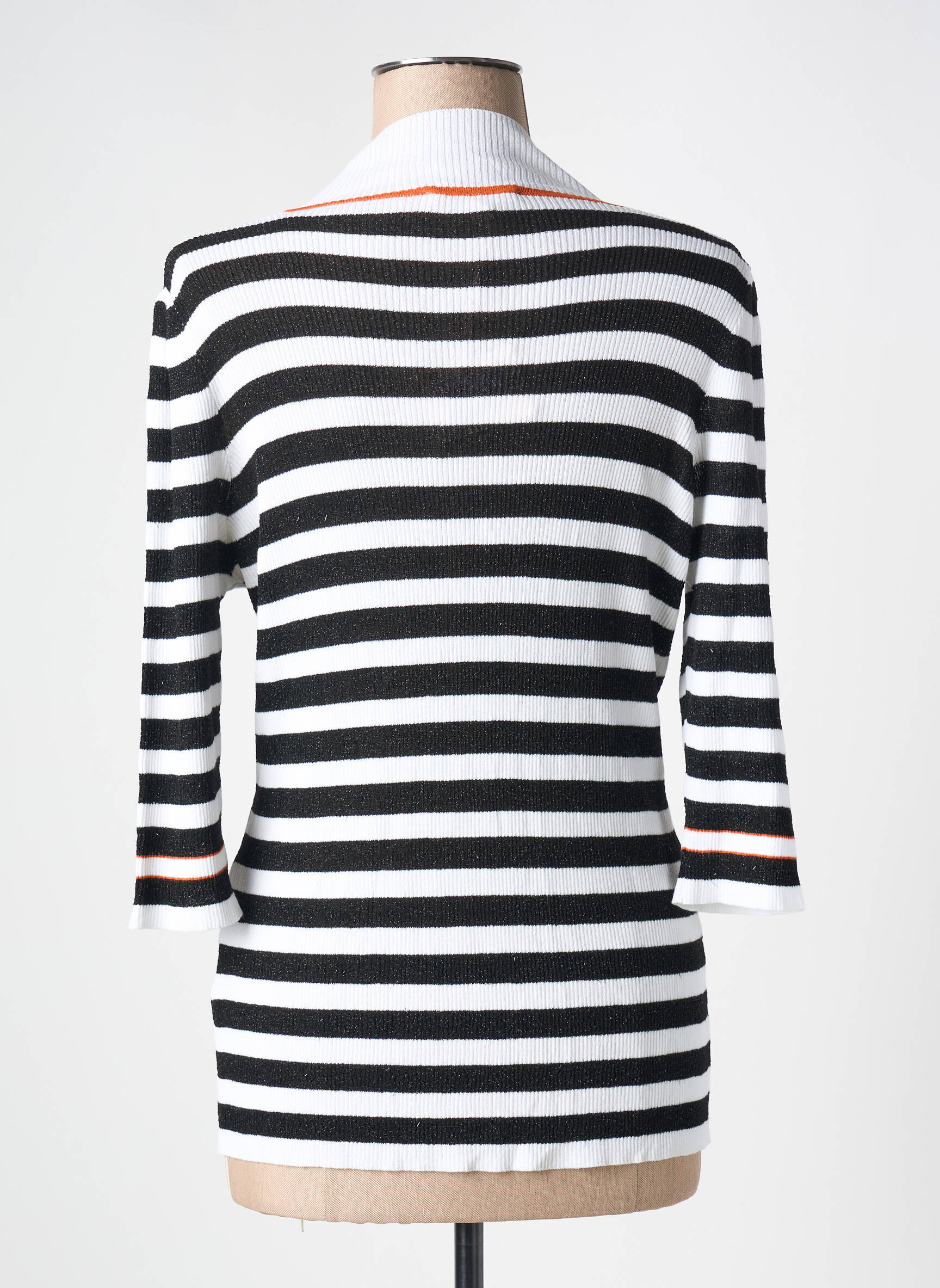 Profitez d’un bon plan mode avec ce pull ELEONORA AMADEI pour femme, affichant un style chic et moderne à prix tout doux. Son motif rayé noir et blanc classique s’associe à des détails tendance comme le col contrastant souligné d’une touche d’orange éclatant, tandis que la coupe ajustée et les manches trois-quarts apportent une note élégante et décontractée à votre garde-robe sans vous ruiner.
