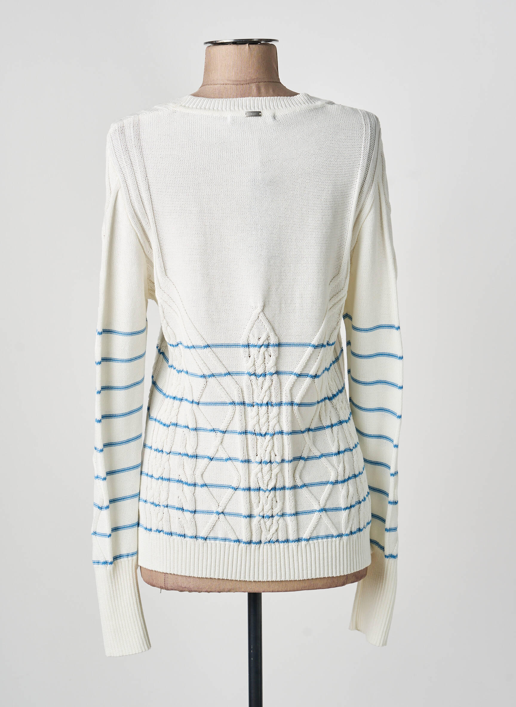 Profitez d’une véritable affaire sur ce pull HIGH pour femme, qui associe élégamment des motifs torsadés et des lignes rayées bleues sur fond blanc, pour un look à la fois moderne et raffiné à prix doux. Les détails soignés et la coupe confortable en font un indispensable de votre dressing, parfait pour celles qui recherchent style et économies sans compromis sur la qualité.