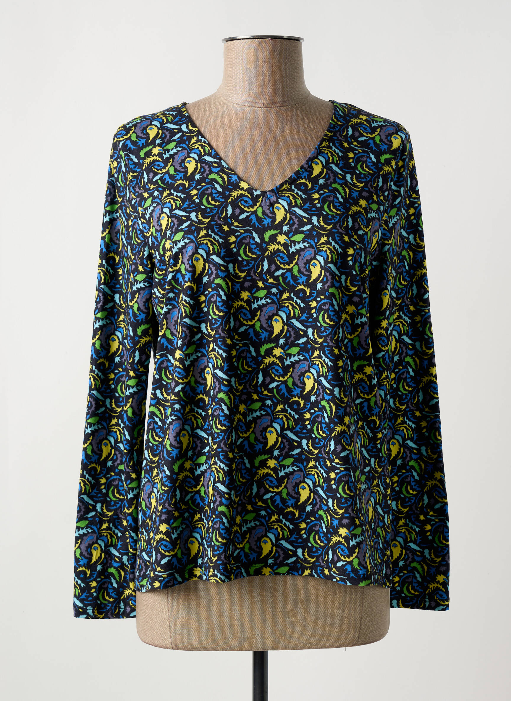 Ce pull pour femme de la marque LA FIANCÉE est une vraie affaire à ne pas manquer grâce à son mini prix ! Son imprimé coloré mêlant des tons bleus, verts et jaunes apporte une touche d’originalité et de bonne humeur à votre look du quotidien, tandis que sa coupe fluide et son col en V vous garantissent confort et féminité pour toutes les occasions. Faites des économies tout en profitant d’un style unique et tendance avec ce pull incontournable en déstockage.